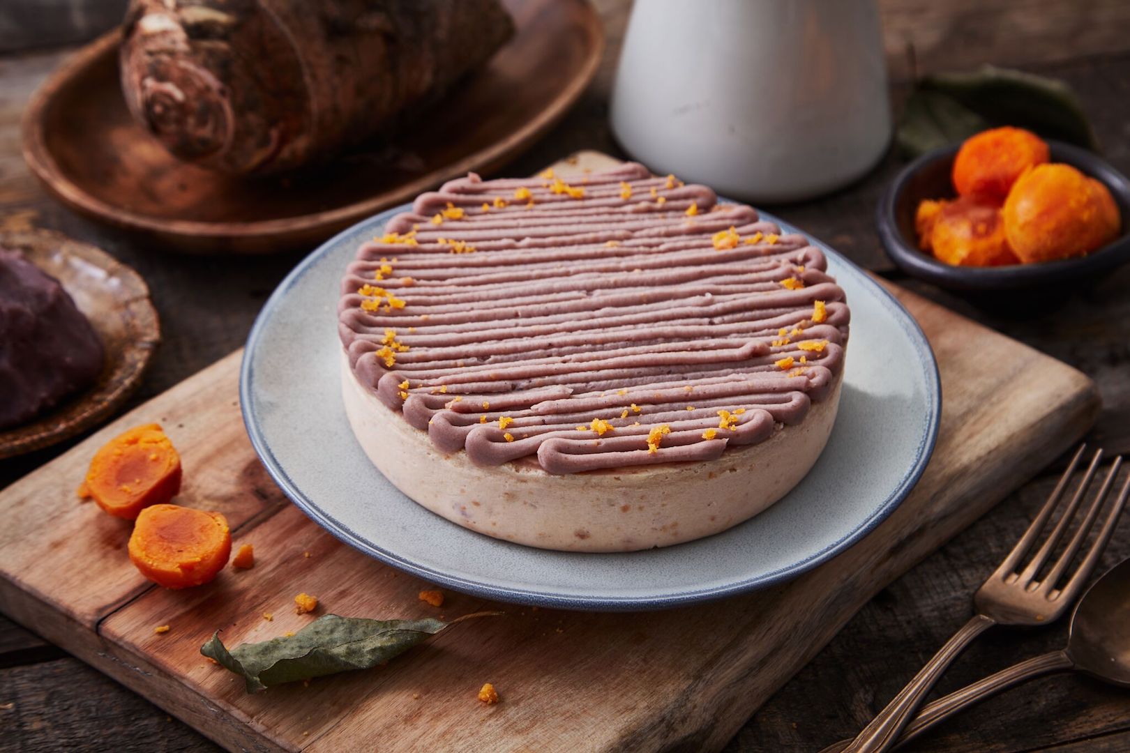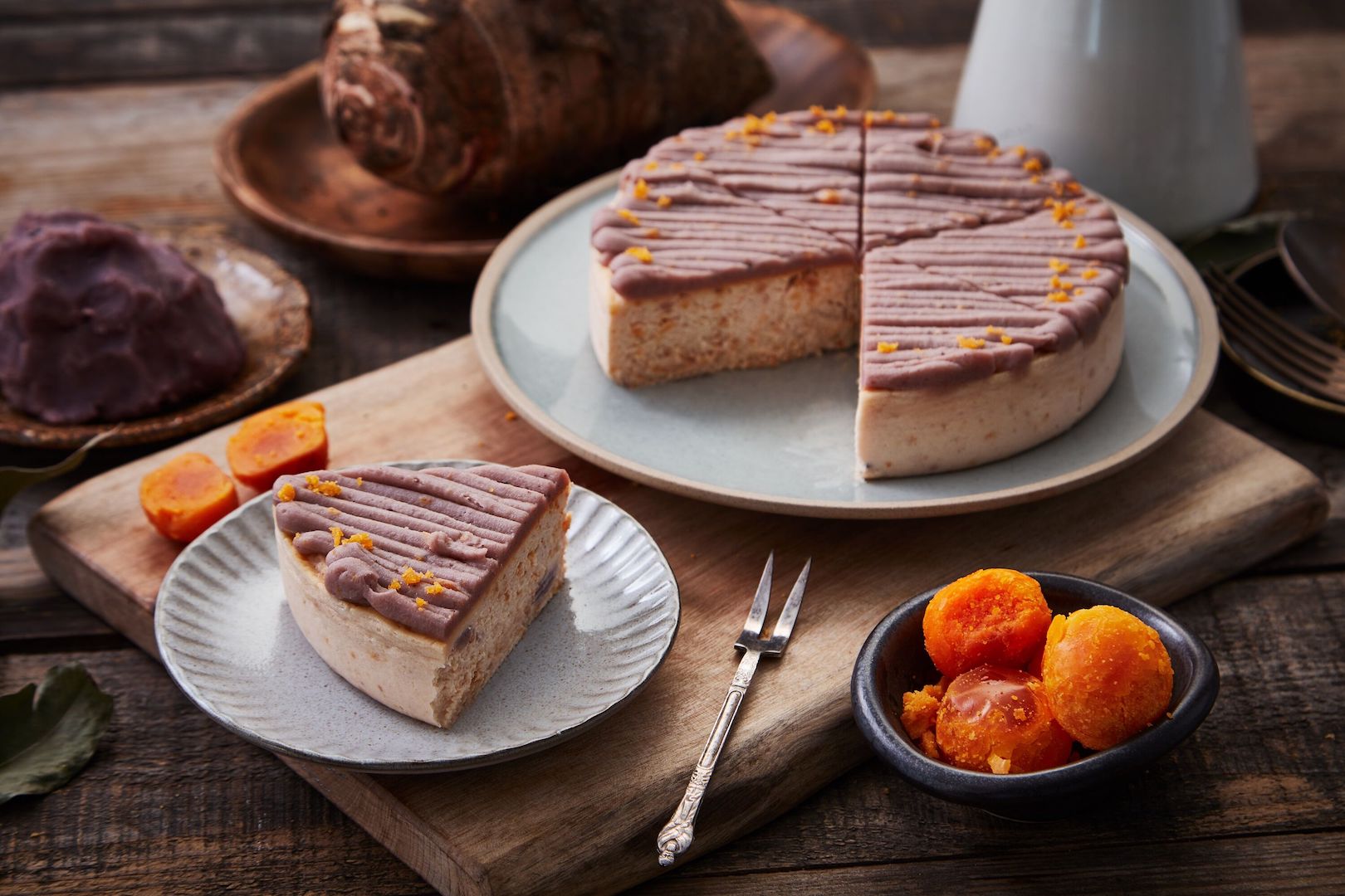 ▼「紫玉金沙乳酪蛋糕」:在乳酪蛋糕中加入月餅裡常見的鹹蛋黃,翻玩出全新的滋味,顛覆大家對乳酪蛋糕的想像。以台中大甲嚴選芋頭、日本鹿兒島韻味濃厚的天然紫薯,結合屏東在地以最自然的方式與高成本孕育出的高品質鹹蛋黃,是中秋送禮的新鮮好選擇。