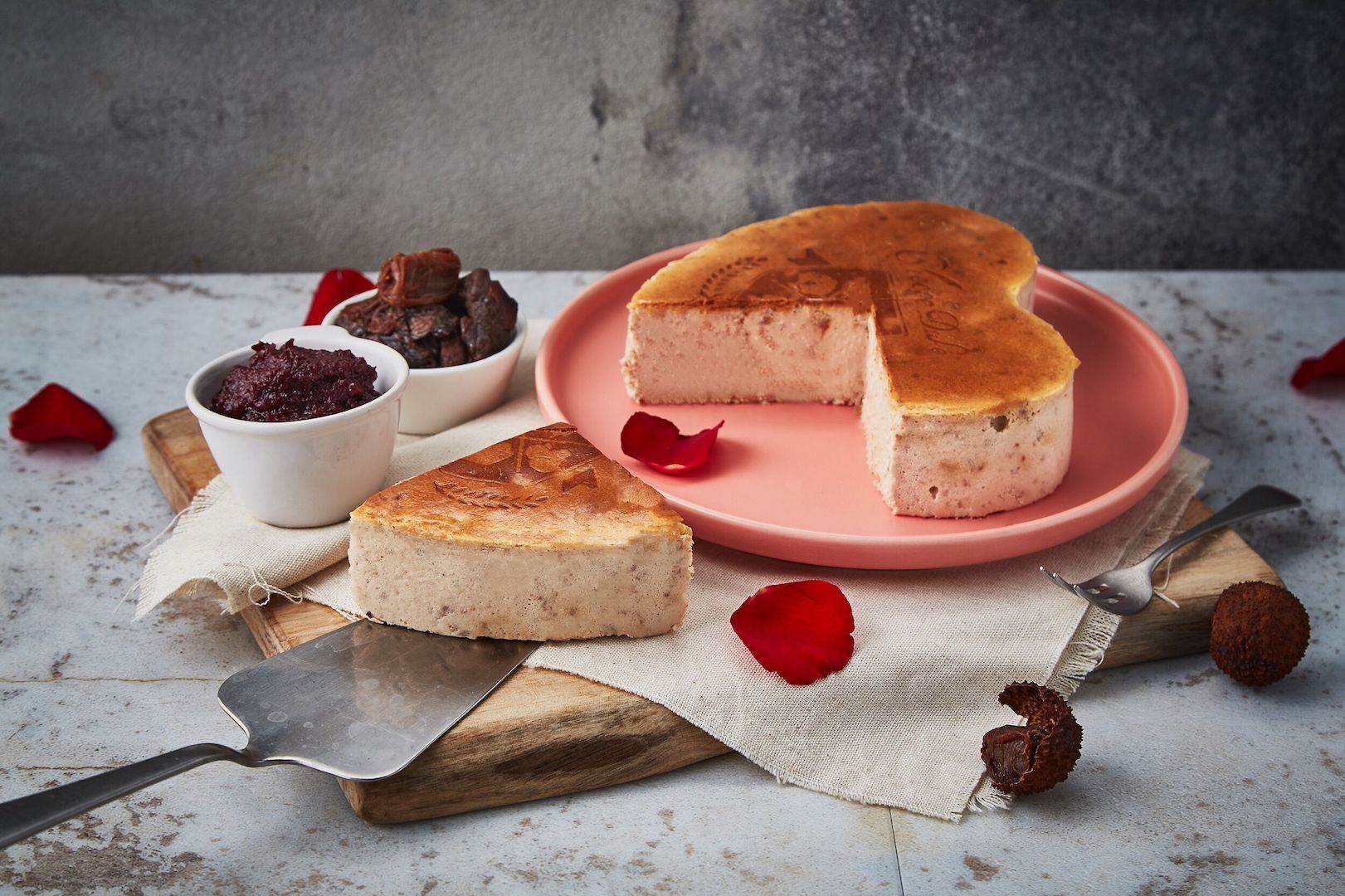 ▼「荔枝玫瑰乳酪蛋糕」:起士公爵也趁著七夕特別推出超美的心型起士蛋糕,特別選用台南東山山頂壯圓的「土窯柴焙玉荷包果乾」,將多汁香甜的玉荷包荔枝以慢火焙燒7-10天,完美保留荔枝香氣;最後再搭配香氣淡雅的屏東大花農場有機玫瑰花瓣,為乳酪蛋糕增添更多風味層次。
