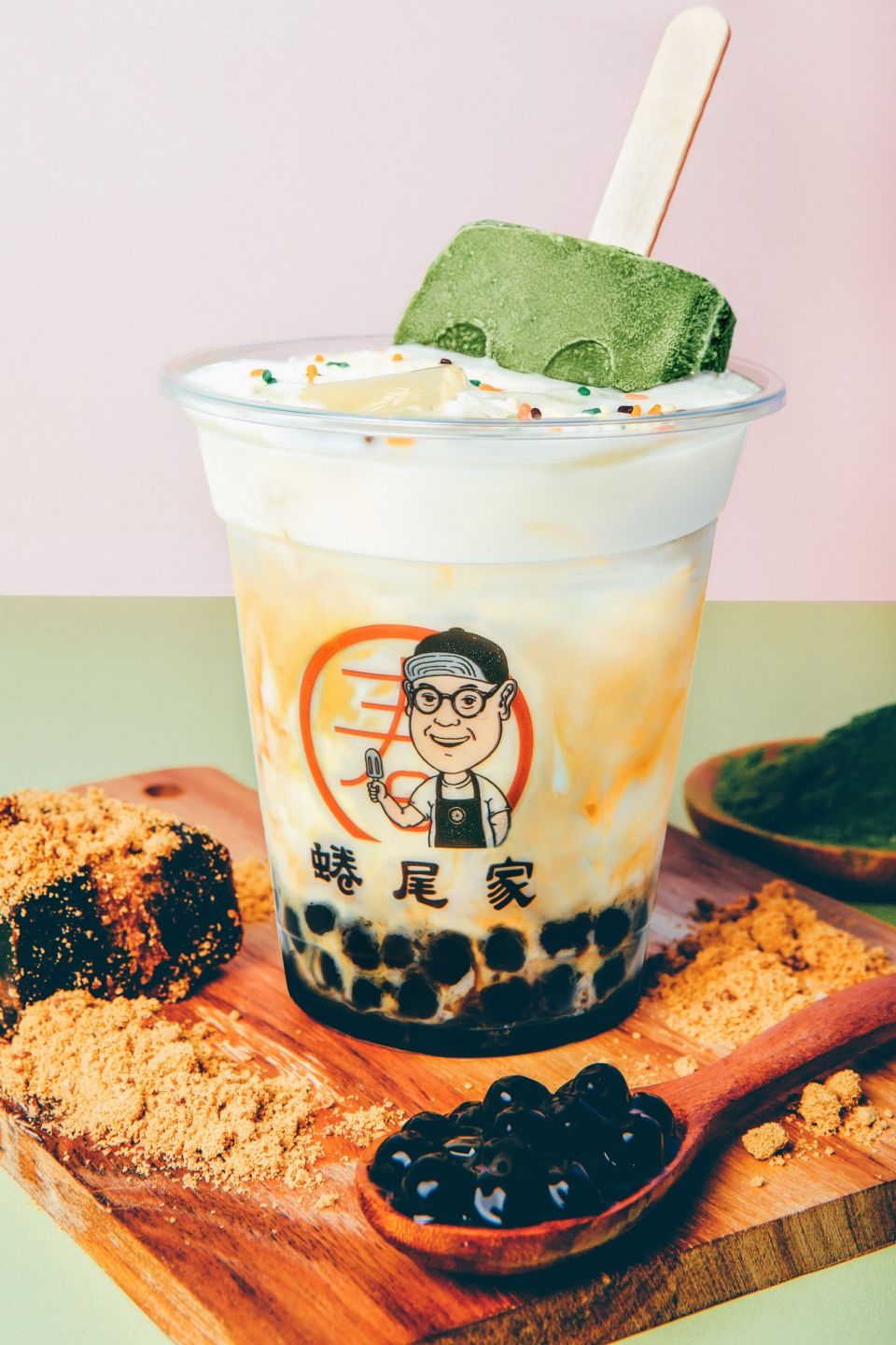 ▼以台灣古早味為創作靈感的「蜷尾家」,首度與春陽茶事合作推出「抹茶啵棒」,春陽特製黑糖珍珠為基底,搭配香醇順口的小農鮮乳以及微鹹奶蓋,光是這樣感覺就很好喝了!最後再加上一隻由蜷尾家監製的懷舊風味抹茶冰棒,一杯飲料你可以單吃冰棒、沾上鹹甜起司奶蓋再一口吃下去,或是等到抹茶冰棒融入鮮奶後,和黑糖珍珠一起大口飲用,三種創意吃法,讓你一次體驗多重味覺饗宴~