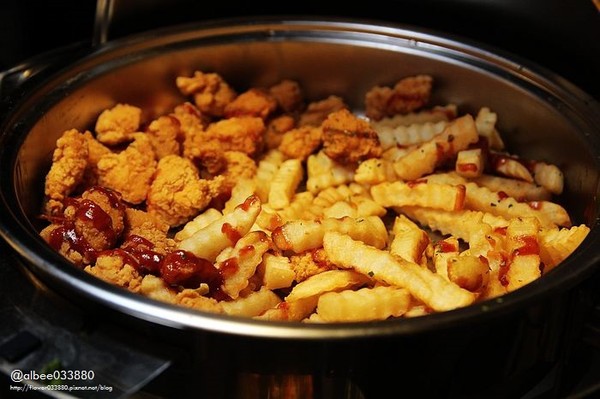 ▼唐揚雞外層裹上一層醬汁,鹹甜滋味非常開胃,另外還有雞肉、豬肉以及牛肉三種肉可以選擇,口味不定期更換!