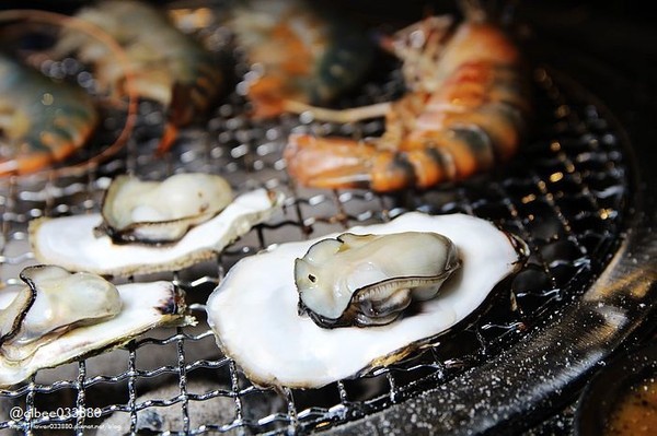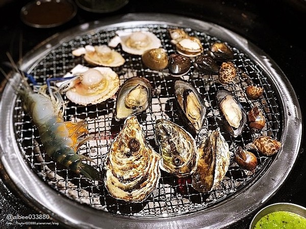 ▼生猛海鮮區也是不能放過的環節,把烤盤放上滿滿的海鮮,每一個都是新鮮、肉質Q彈又肥美,牡蠣咬下去還有噴汁的感覺,吃完不夠還可以再去拿,膽固醇什麼的不用怕,先吃完再說!