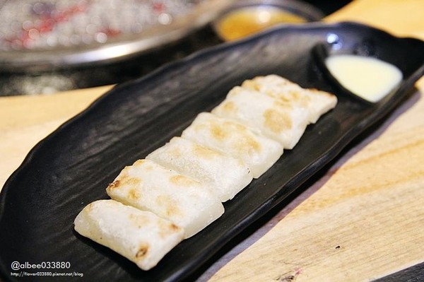 ▼燒肉的結尾就是要來點飲料、吃點甜點才算完美,店裡有橘子汽水、台灣茗品茶以及海尼根,當然也有燒肉必備甜點「烤麻糬」,烤的澎澎的之後,沾點香甜煉乳當飯後甜點剛剛好~