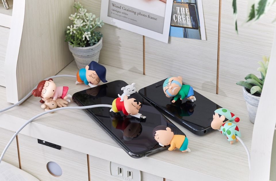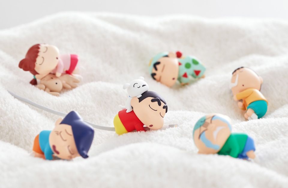 ▼其中最受歡迎的就是一系列的「蠟筆小新咬線器」,有春日部防衛隊全體成員款式,看著小新睡覺時還不忘保護著你的充電線,療癒的模樣不得不收啊!