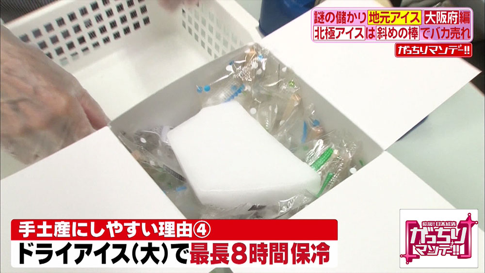 ▼而且一般而言,買冰棒都是現場直接吃比較多,就算要外帶也是家裡住比較近;貼心的北極冰棒為了服務觀光客,直接在盒裝冰棒裡放入一大塊乾冰,可以保冷8小時!