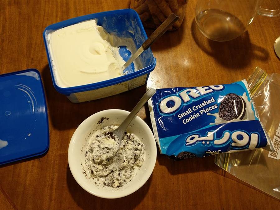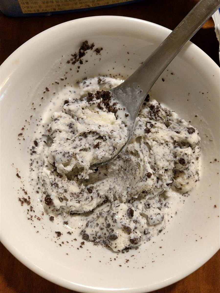 ▼這名網友準備了Oreo餅乾,和好市多賣的「蘇格蘭經典牛奶冰淇淋」。先將餅乾碾碎,再將兩者混合,按照自己的喜好調一下比例,就能做出符合自己口味的冰炫風了。