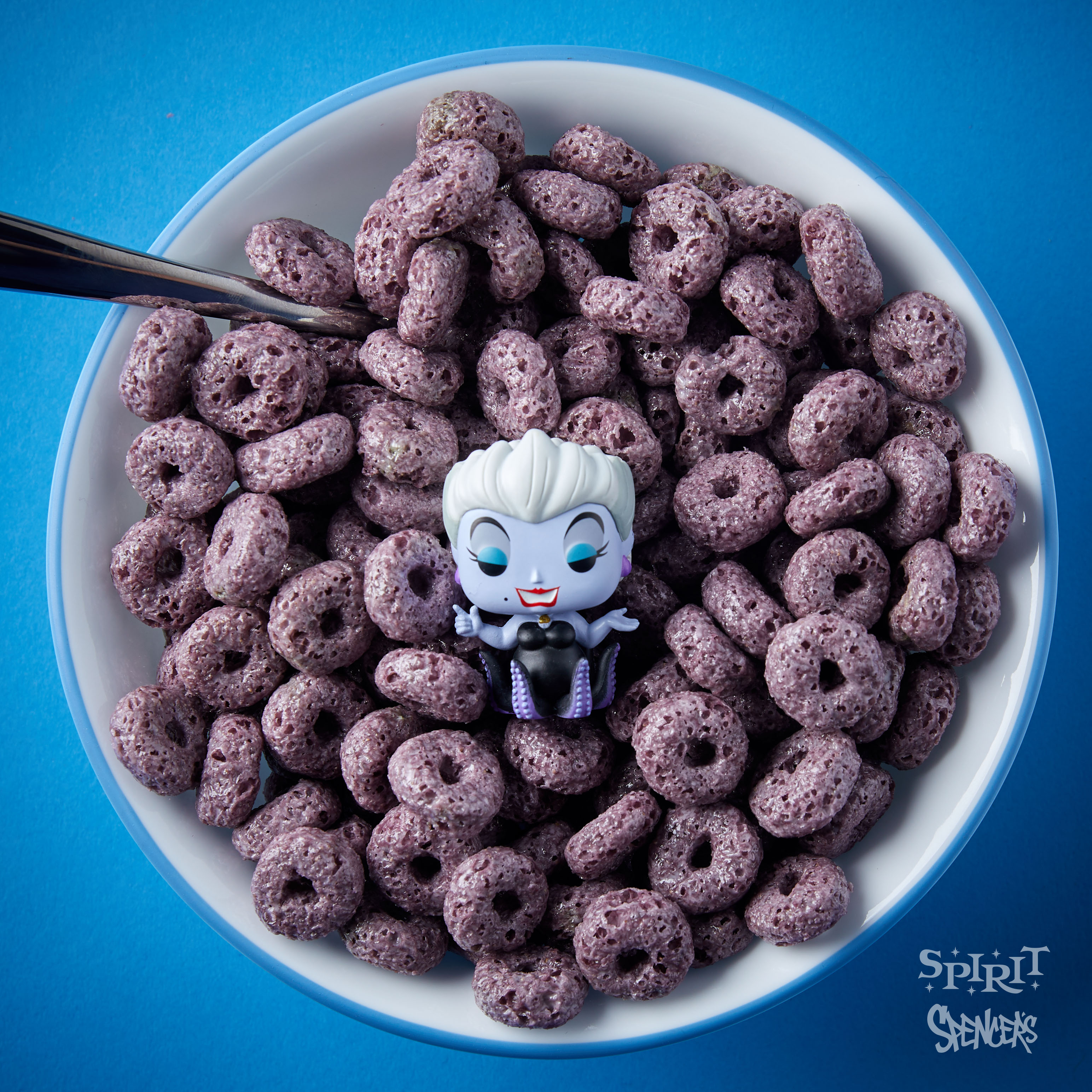 ▼烏蘇拉的穀片會呈現跟她本人相搭的紫色,先不論會不會有食慾,紫色的穀片就是超級酷啊!除了外包裝會印上Q版烏蘇拉外,裡面也會附上Q版小公仔,吃穀片還能順便收集~
