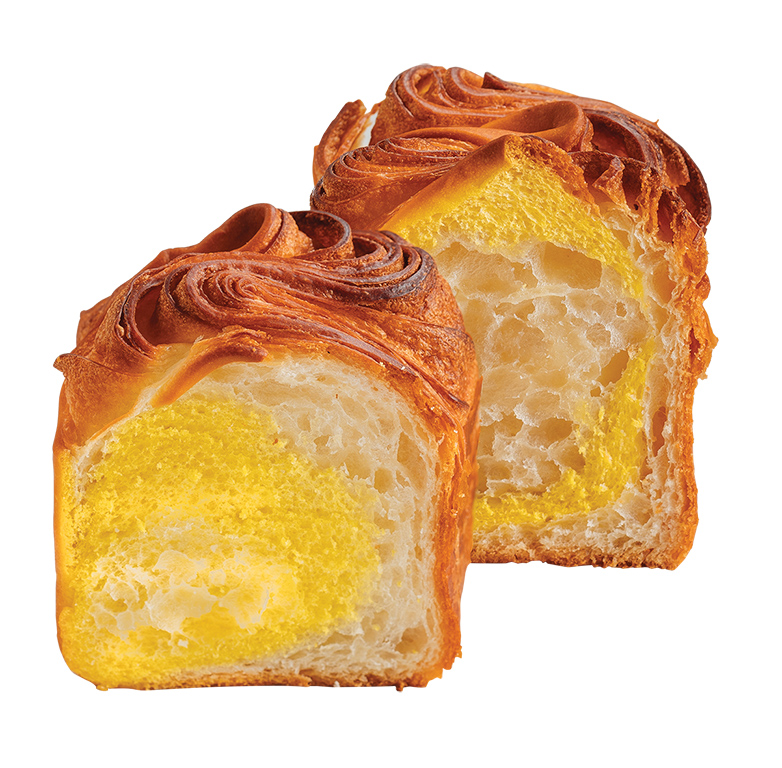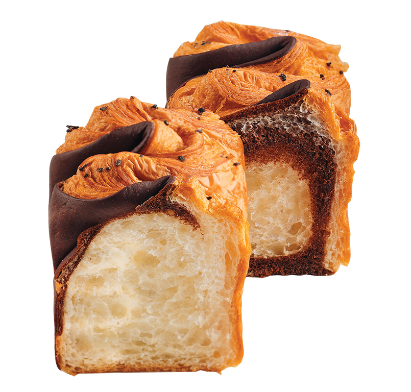 ▼層層摺疊烘烤完美賦予酥脆多層次口感,而丹麥吐司的摺數越高麵包體就越細緻、輕盈,吃起來比較爽口、不油膩。此外,切開後更有別具巧思的雙色驚喜!海鹽松露是質感的深可可色 、 絕品奶油則是可愛的鵝黃色,絕對是餐盤上最秀色可餐的美味。