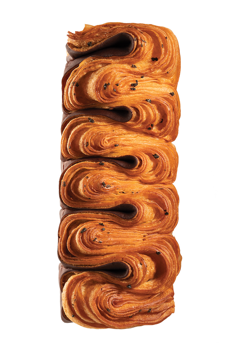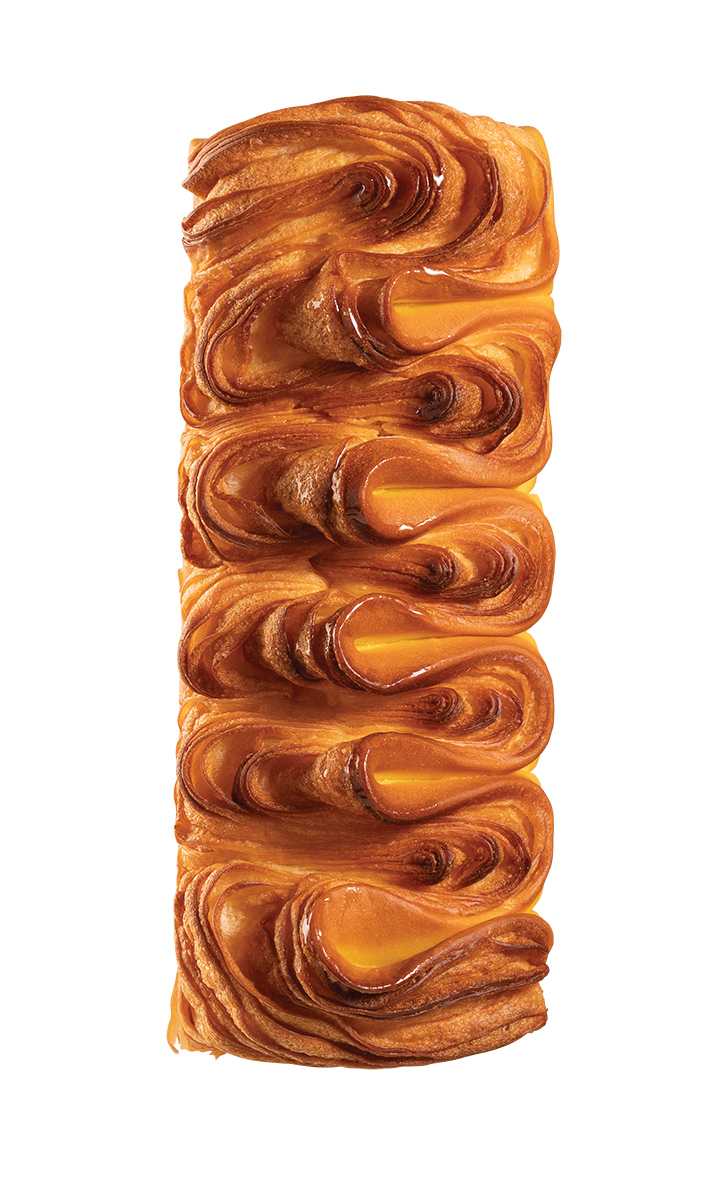 ▼精品烘焙「昂舒巴黎」首波烘焙訂製新品為「波浪丹麥吐司」,不只希望給消費者最新鮮的美味,同時也能感受精品烘焙的工藝之美,採用27層純手工摺疊工法捲繞出美麗浪花,繁複手工考驗波浪間寬度與弧度的拿捏,才能穩穩讓「麵團站立起來」,整個丹麥吐司的摺疊層次能更完整呈現,這也是今年法國烘焙界最蔚為風尚的麵包造型。