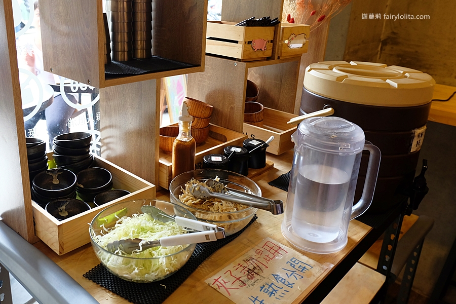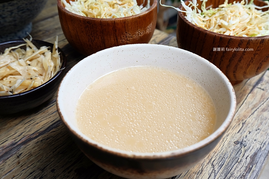 ▼《沐丼》的自助吧雖然是無限供應,但是店家對於食材卻一點都不馬乎,高麗菜絲淋上特製胡麻醬汁,口感清甜爽脆,無疑是一道開胃聖品,而《蹦啾*謝蘿莉》也大力推薦豚骨湯,濃而不膩又充滿著豚骨香氣,有到《沐丼》用餐的朋友們記得去品嚐看看喔!