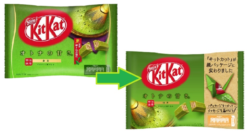 ▼為了響應環保,並減少塑膠的使用量,日本Kit Kat決定每年至少減少418噸塑膠垃圾。他們承諾2025年以後,將100%使用可回收及可重複使用的包裝。