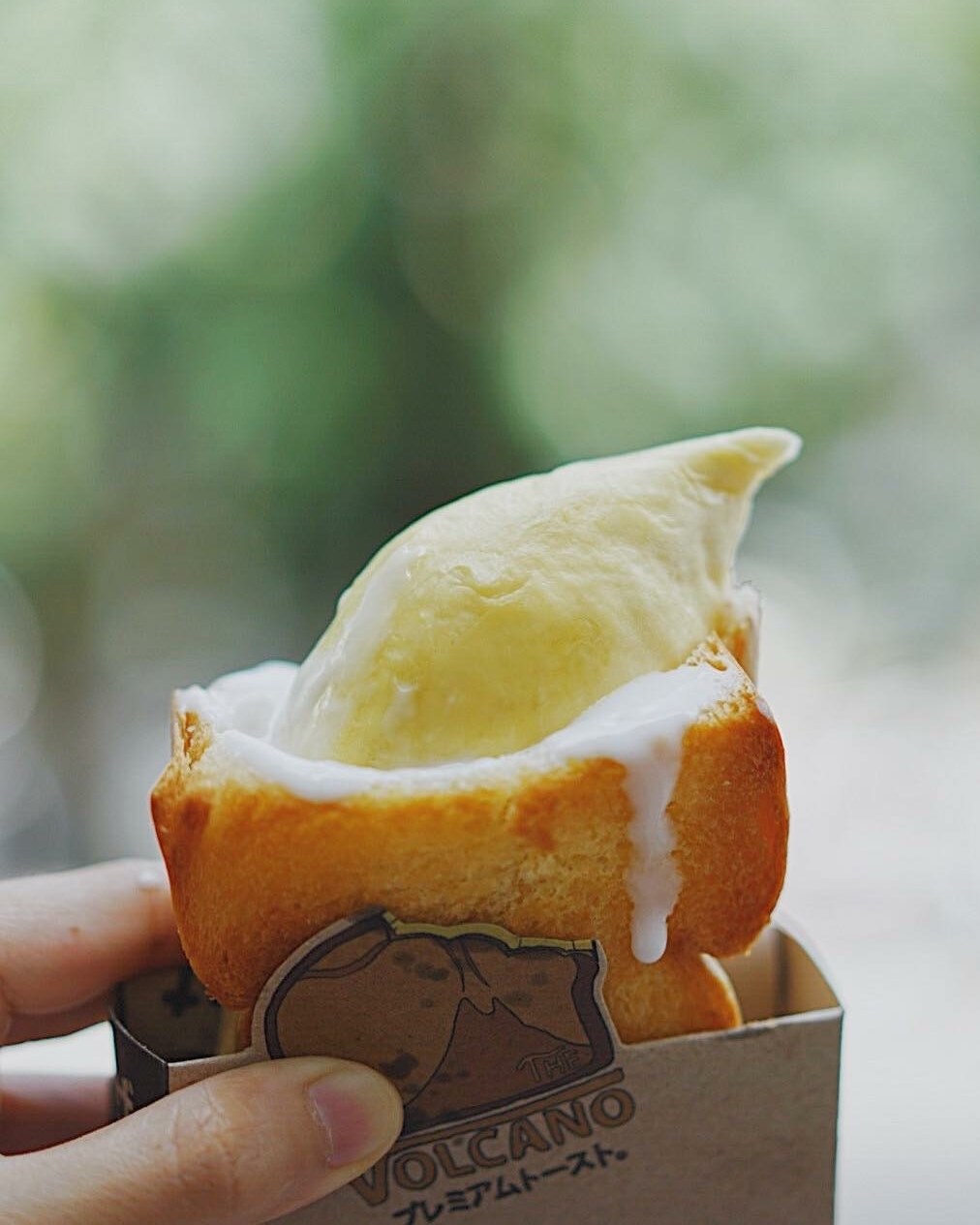 ▼泰國一家以烤吐司為賣點的甜點店「The Volcano」,在吐司裡包入整塊榴槤下去烤,這一幕相信不少榴槤控們光用看的就受不了惹吧~