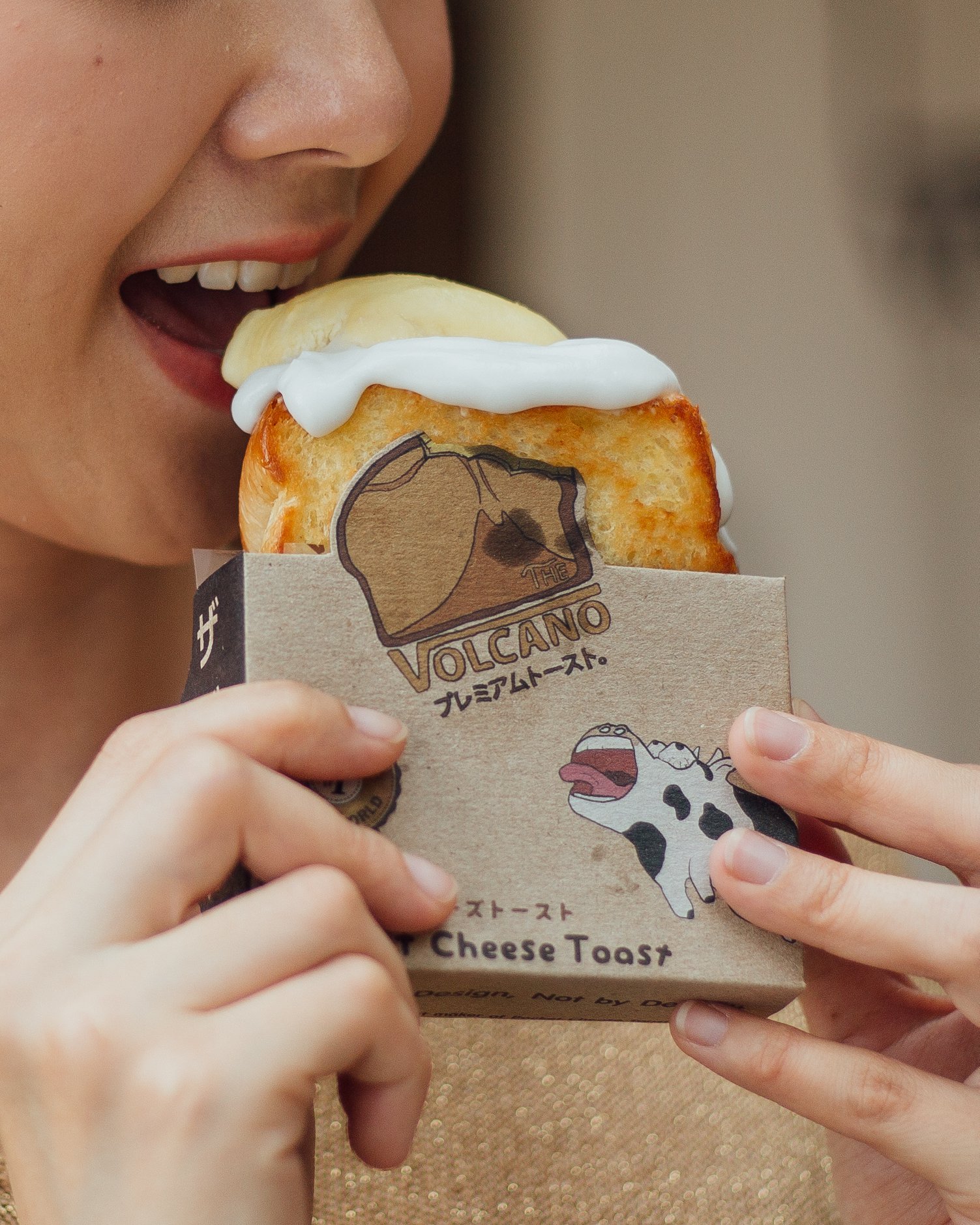 ▼一口咬下,榴槤的香氣充盈整個味蕾,混合了榴槤味的椰奶醬更是直接噴出來;吐司酥脆的口感加上榴槤內餡的濕軟綿密,讓不少挑嘴老饕們都被這道烤吐司給征服了。