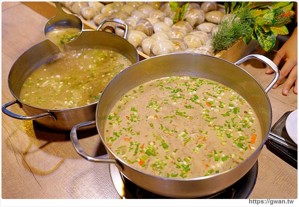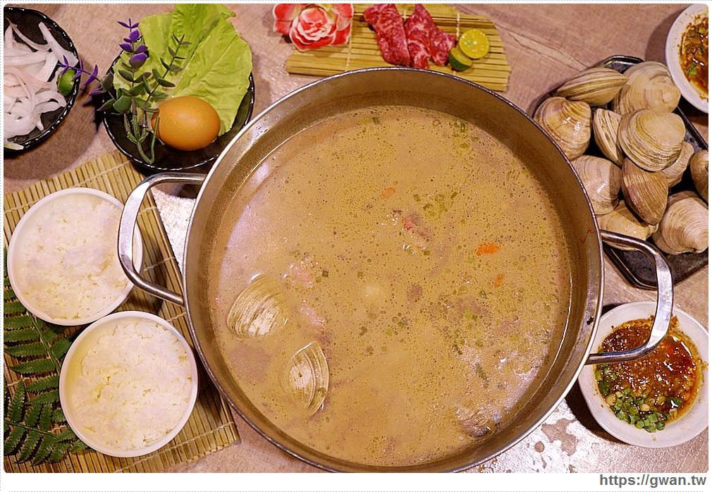 ▼點牛奶貝火鍋,店家還會貼心地特製湯頭,使用豬大骨、雞爪及多種蔬果熬製的湯頭,加入蒜頭、辣椒簡單調味,剛入口會感到鹹度不足,但只要煮了大量的牛奶貝,湯頭就會自然充滿海味,集鮮、甜、鹹、香於一鍋之中。