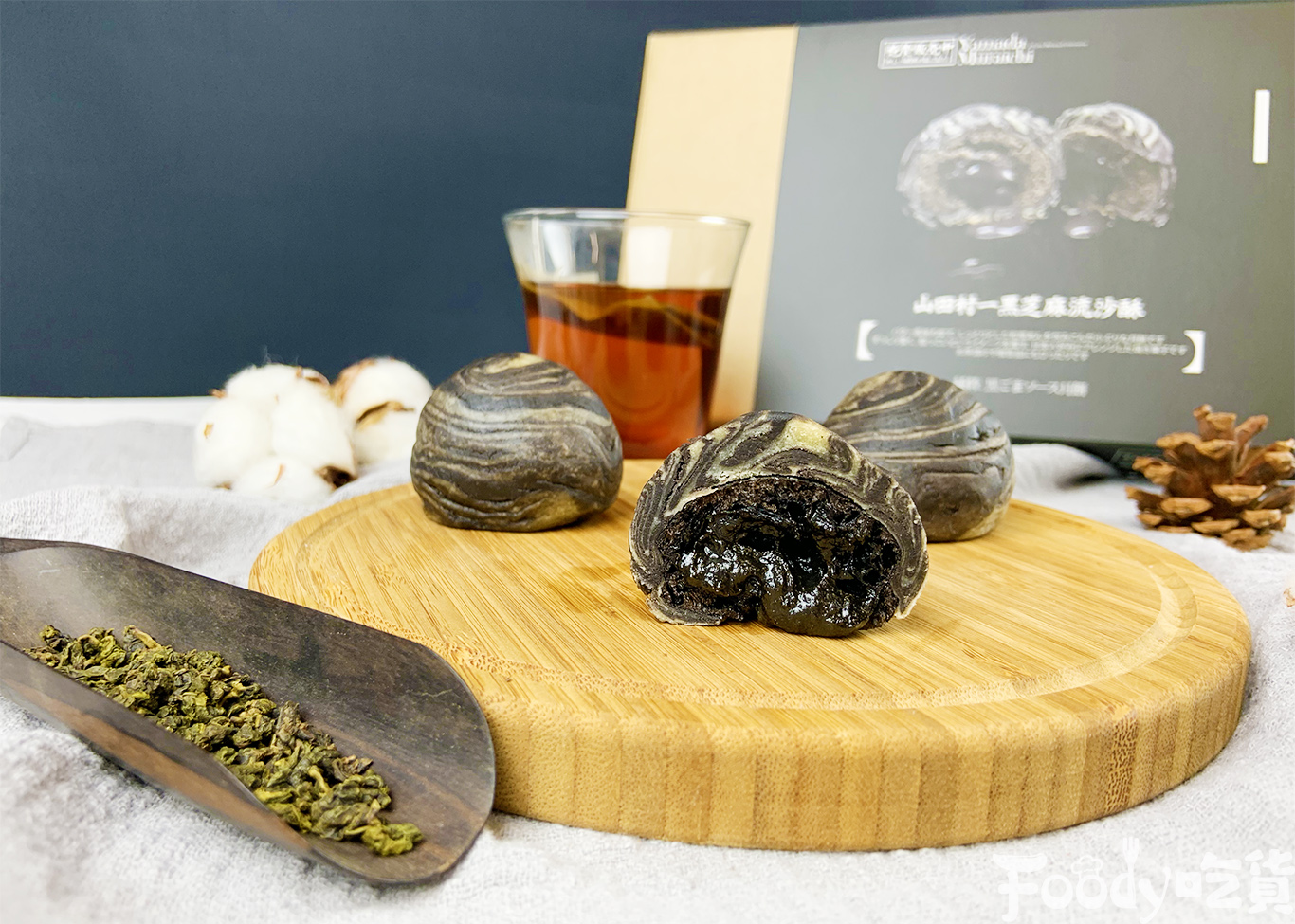 ▼「山田村一黑芝麻流沙酥」售價399元,入選2018年雜誌中秋最強月餅特搜,酥鬆餅皮包裹黑芝麻流沙餡,一口咬下滿滿濃郁芝麻香氣撲鼻,口感豐富有層次。