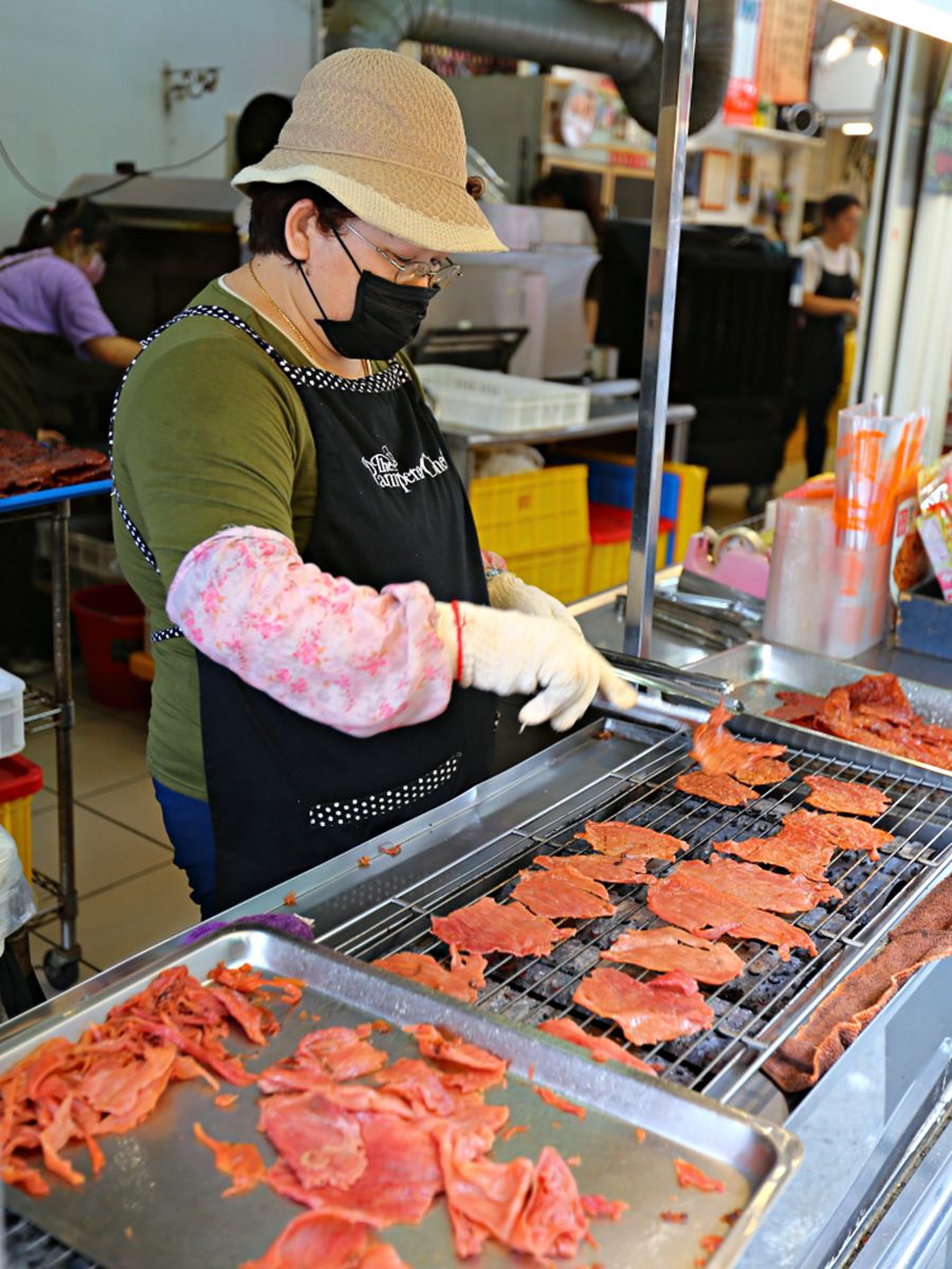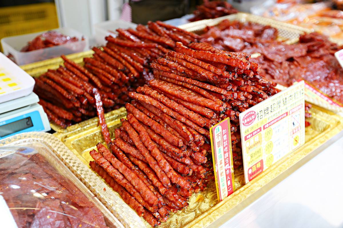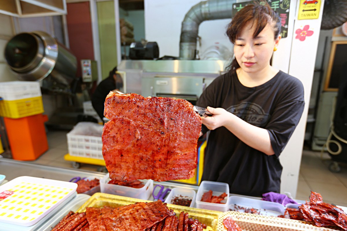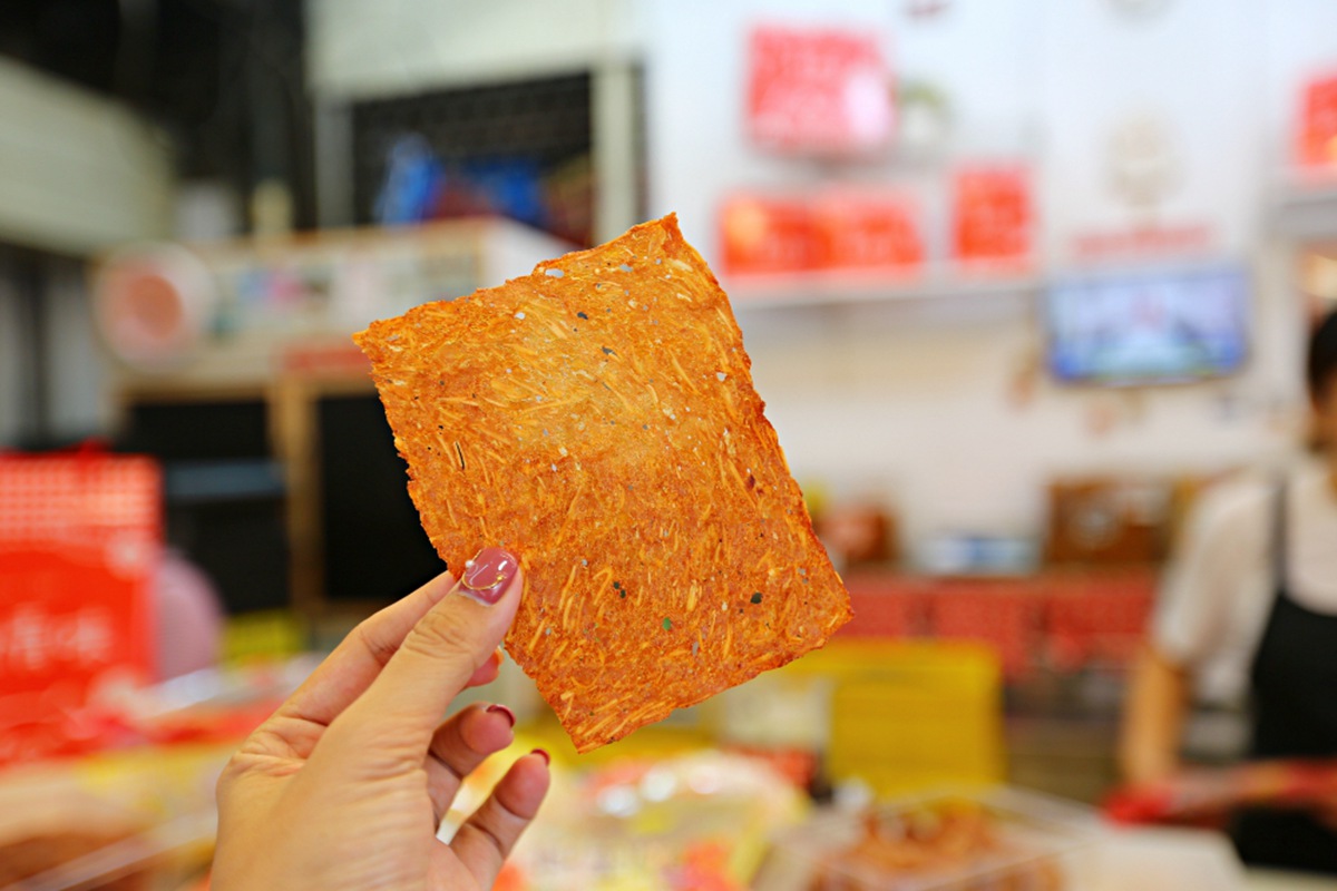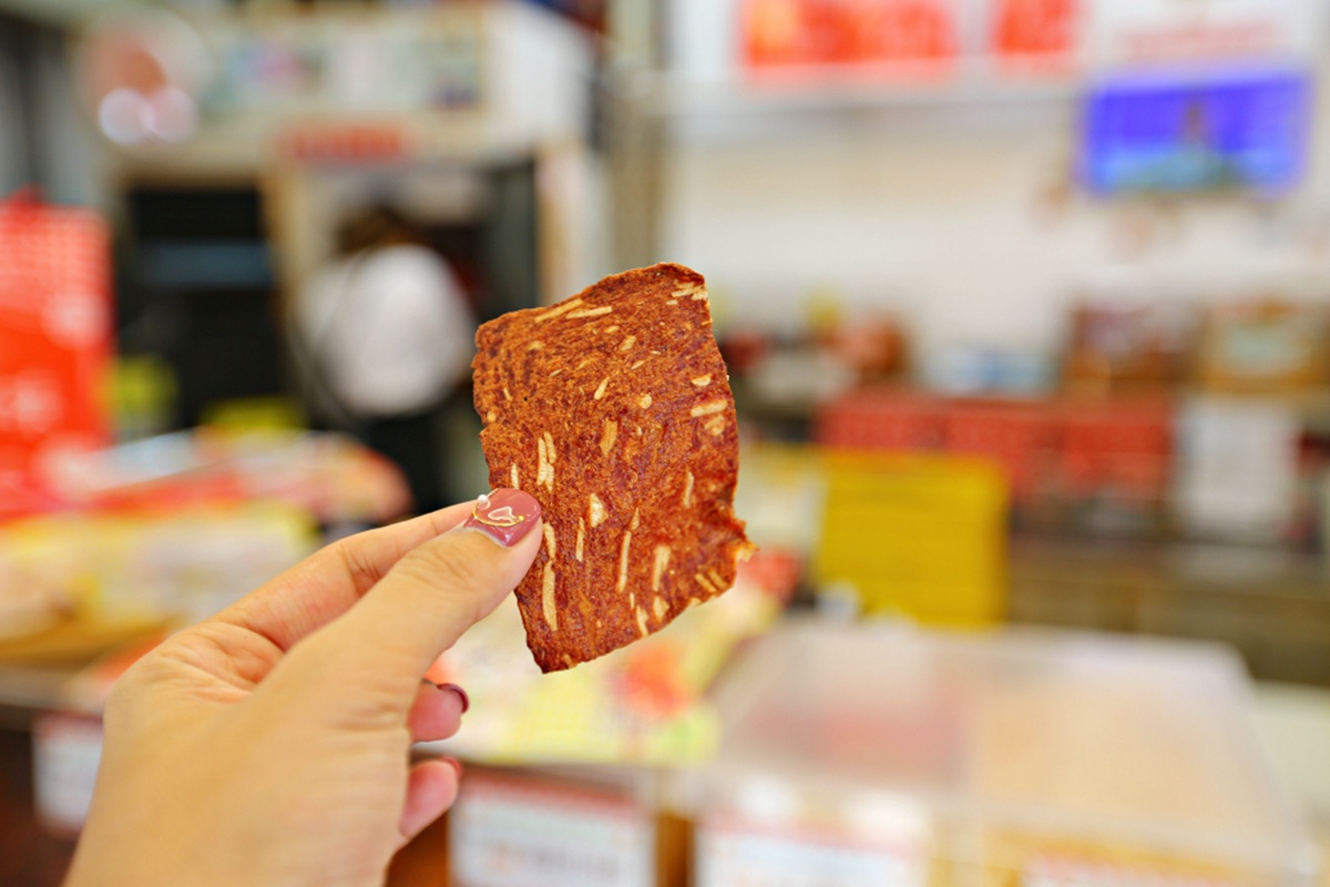 ▼主打現烤現做,香氣逼人讓許多遊客駐足觀看,許多外國遊客都指名要買這家呢!其中人氣最夯的就是「招牌薄片豬肉乾」,邊緣微焦的酥脆口感,非常適合追劇時一片接一片的吃!經典傳統豬肉乾,一整片比臉還要大!選用整塊後腿豬肉,經過慢火烘烤後,豬肉的精華通通所在肉乾裡!肉乾有分薄片跟厚片,也有不同的口味可以選擇~