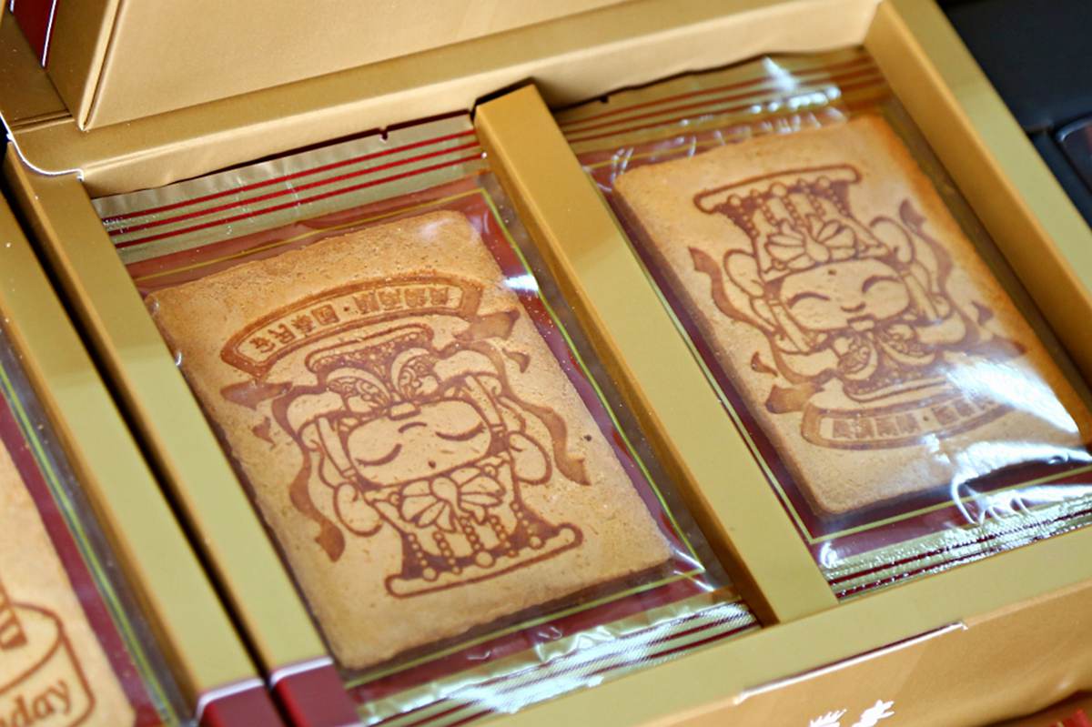 ▼除了鈔票造型煎餅,另外還有小巧一口吃的造型煎餅,像是小熊煎餅、台灣圖樣煎餅、桃形煎餅、小鴨煎餅等,也有印上Q版媽祖的造型煎餅,不論是送給長輩還是親朋好友都很適合!