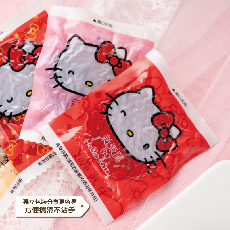 ▼這次Hello Kitty聯名款的包裝,是單片輕巧包裝,讓你可以隨身攜帶又不怕沾到手!拿去分給朋友、同事也很方便又有面子!