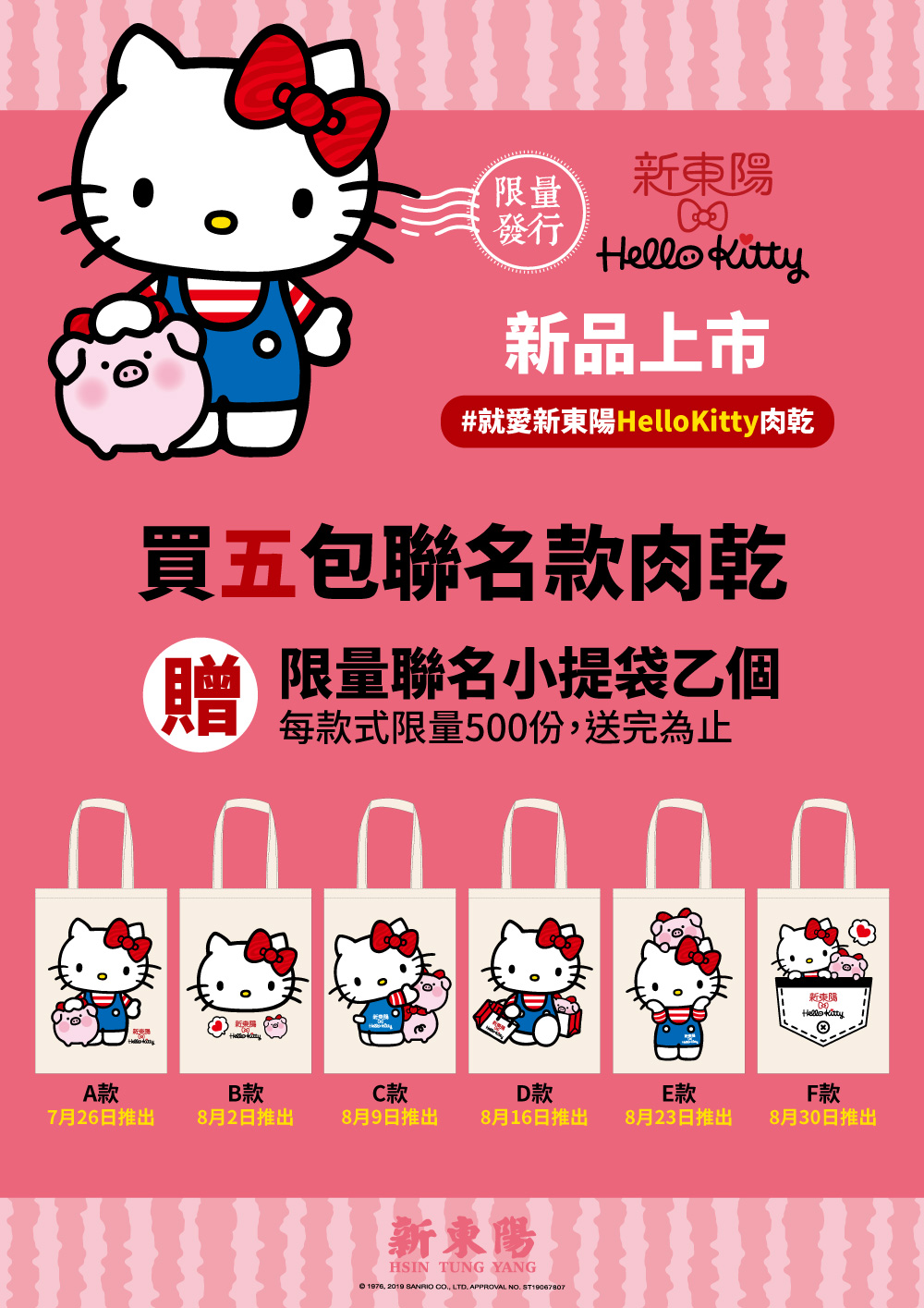 2019年08月21日風靡全球的Hello Kitty一直是許多粉絲心頭好,不論是官方推出的最新造型商品,還是跨界聯名款,相信各位Kitty控們絕對會為了Hello Kitty不惜不顧自己的荷包。但這次的聯名非常不一樣!是所有台灣人從小吃到大的肉乾品牌「新東陽」,這次與Hello Kitty強勢聯名,推出兩款萌到不行的肉乾,包裝的高顏值搭配涮嘴的肉乾,送禮自用都很可以!