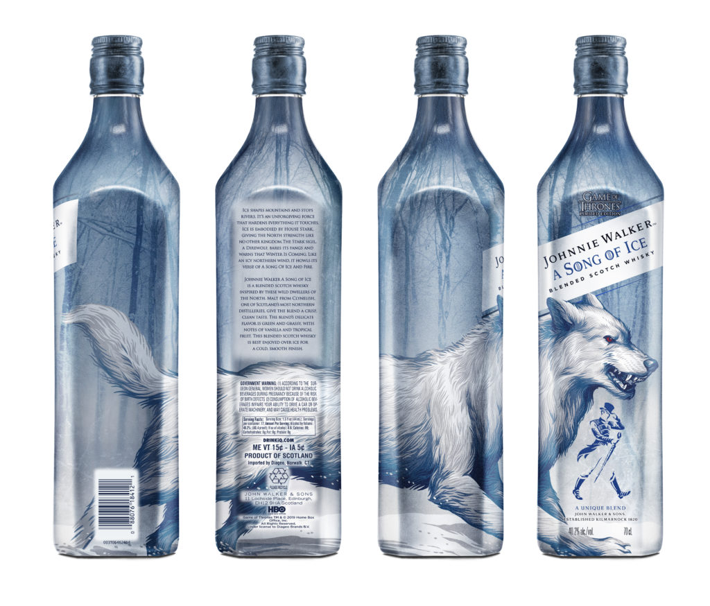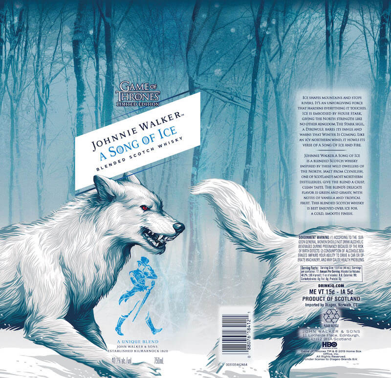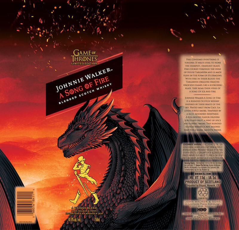2019年11月25日《權力遊戲:冰與火之歌》最終季雖然已經播放完畢,但是影迷依然對商品很有興趣!美國知名威士忌約翰走路(Johnnie Walker)也推出全新聯名酒款,這次推出2種酒款,分別是「A Song of Ice 冰之歌」和「A Song of Fire 火之歌」,而且瓶身超帥!