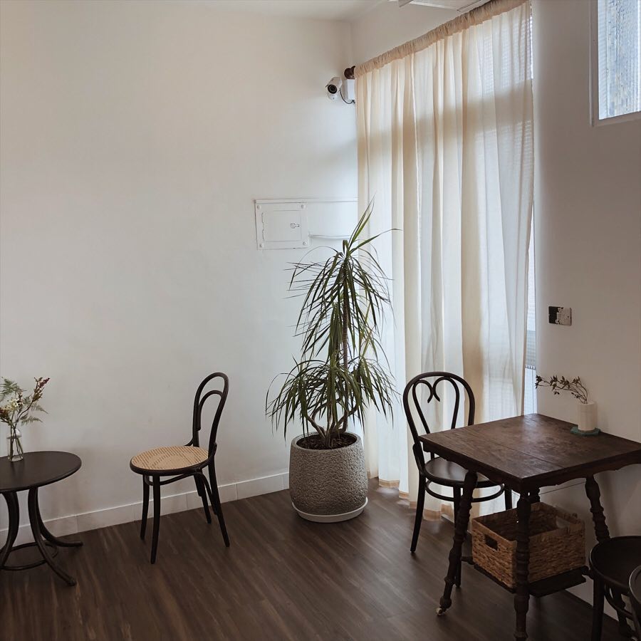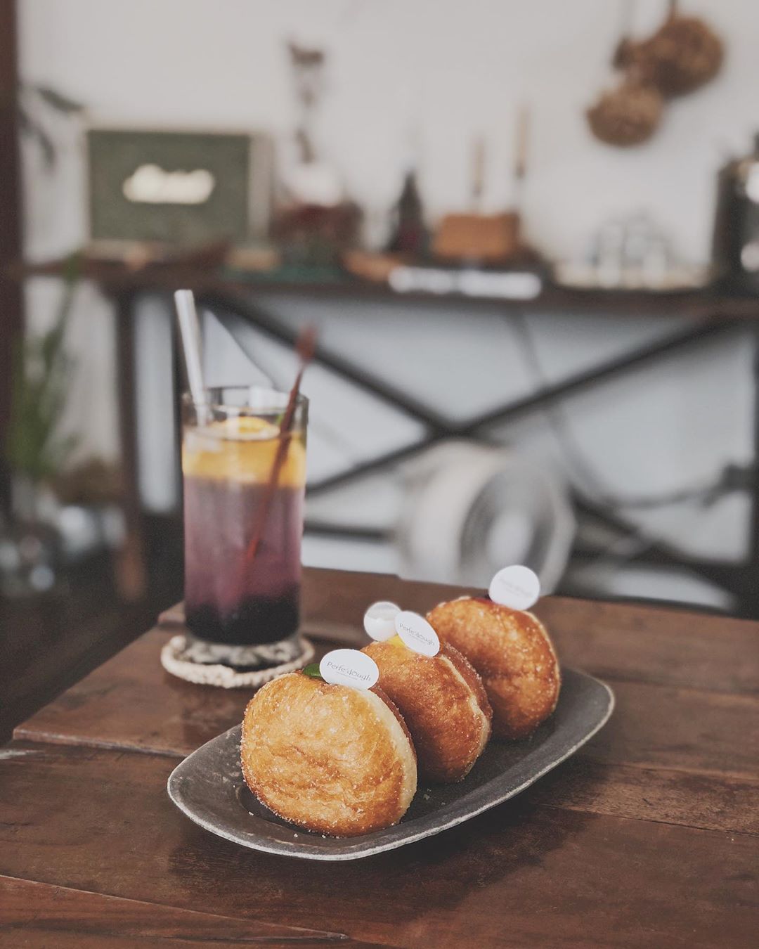 ▼位在台南市南區,隱匿在住宅區三樓的「Perfe'dough」,純白的牆壁、微微透光的窗簾,搭配許多木質桌椅,古物、植物和甜甜圈木櫃點綴,讓你一進來就能感受到寧靜的舒適環境,很適合花一整個下午坐在這裡發呆~