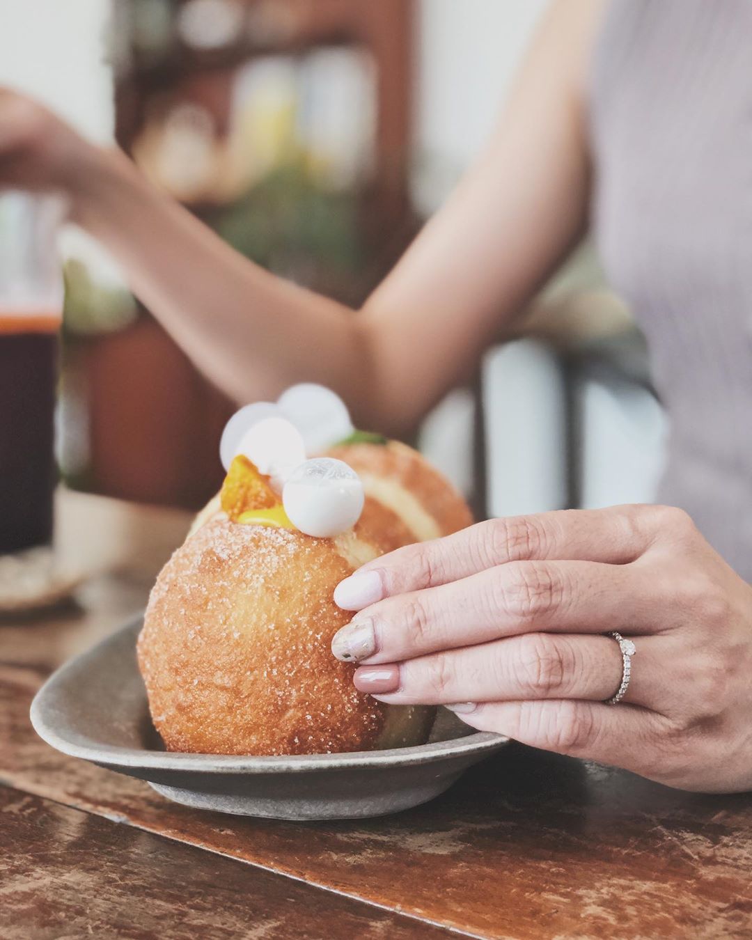 ▼主角「甜甜圈」更是所有人甘願乖乖排隊的原因,有別於一般傳統甜甜圈,少了中間小空洞,直接在甜甜圈裡擠入滿滿的內餡,讓你一次享受到甜甜圈麵包的Q彈,以及濃郁的卡士達內餡~