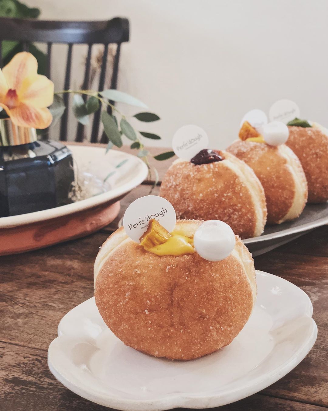▼這裡的甜甜圈有多種口味可以選擇,例如香草卡士達、法芙娜巧克力、覆盆莓乳酪、小山園抹茶、蜂巢焦糖榛果。甜甜圈的口味會在每週四晚上公布在官方粉絲專頁,建議大家如果要去Perfe'dough之前,看一下官方粉專最新資訊喔!