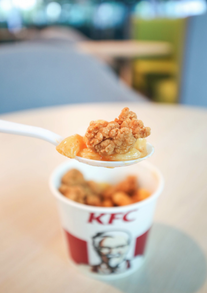 肯德基的升級版起司通心粉真的太誇張,多到快要滿出來的起司和雞米花真的沒在省的耶!拜託台灣的肯德基也把起司通心粉納入主餐好不好?