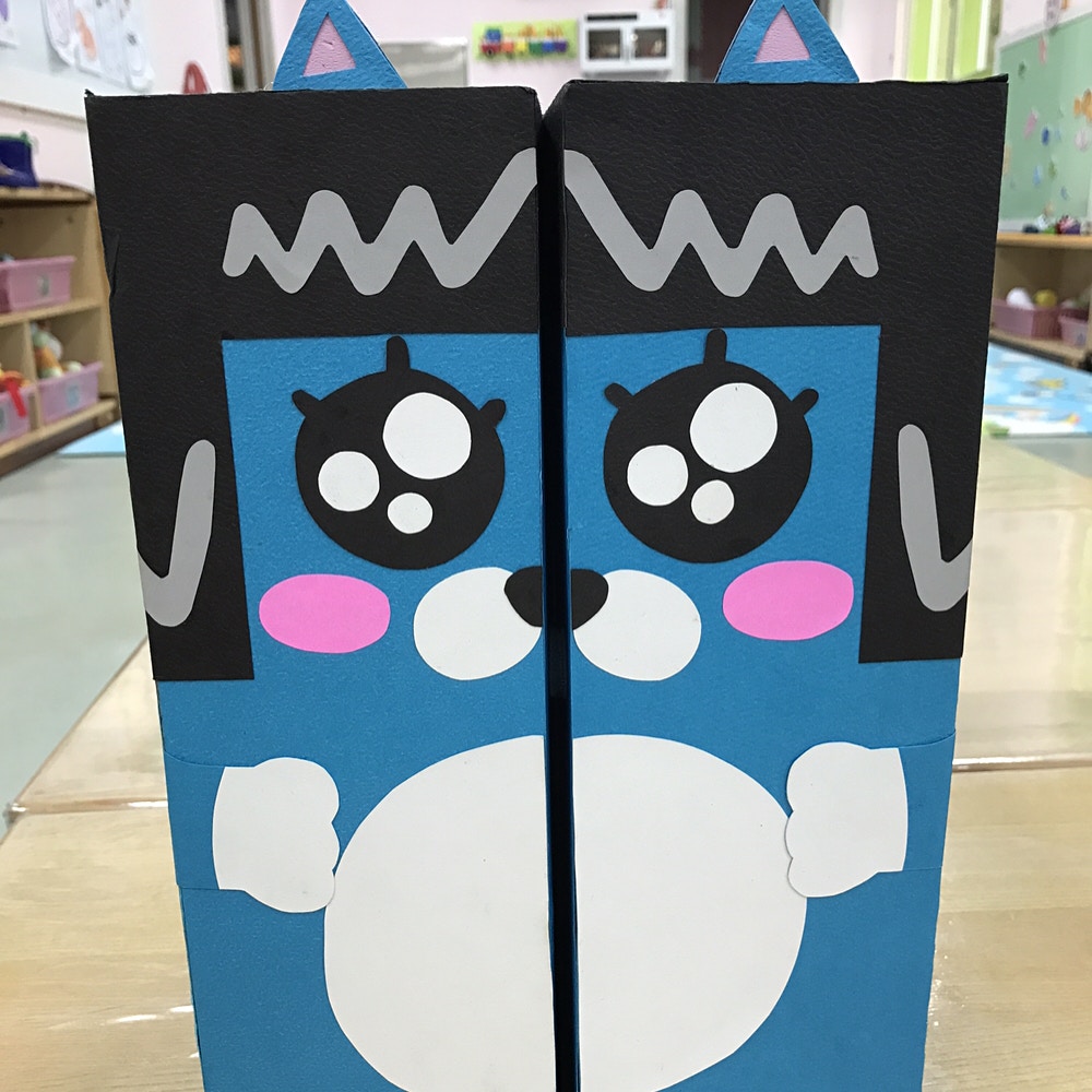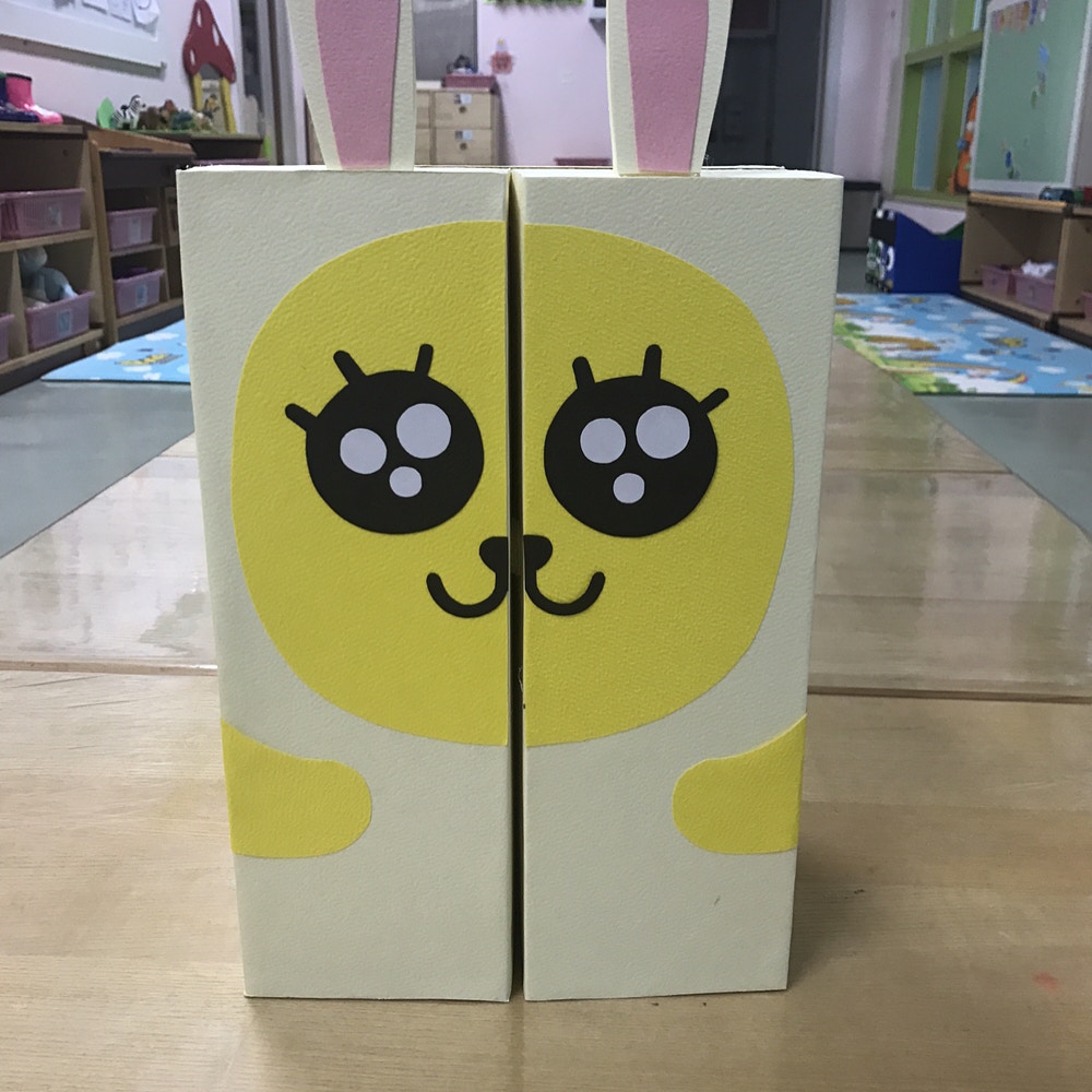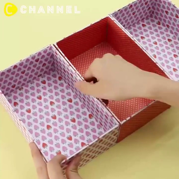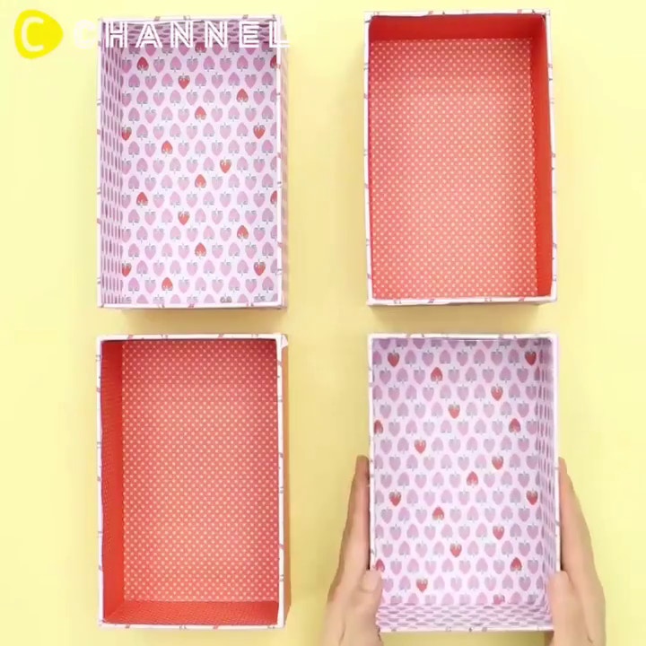 ▼在貼好包裝紙的紙盒背面貼雙面膠,將幾個盒子組合起來;