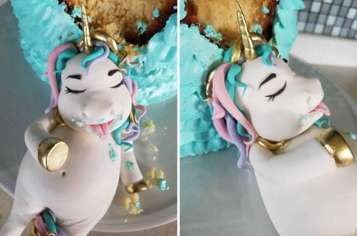 要求做獨角獸蛋糕卻來了「肥獨角獸」 顧客看到「蛋糕被咬一口」就笑噴了