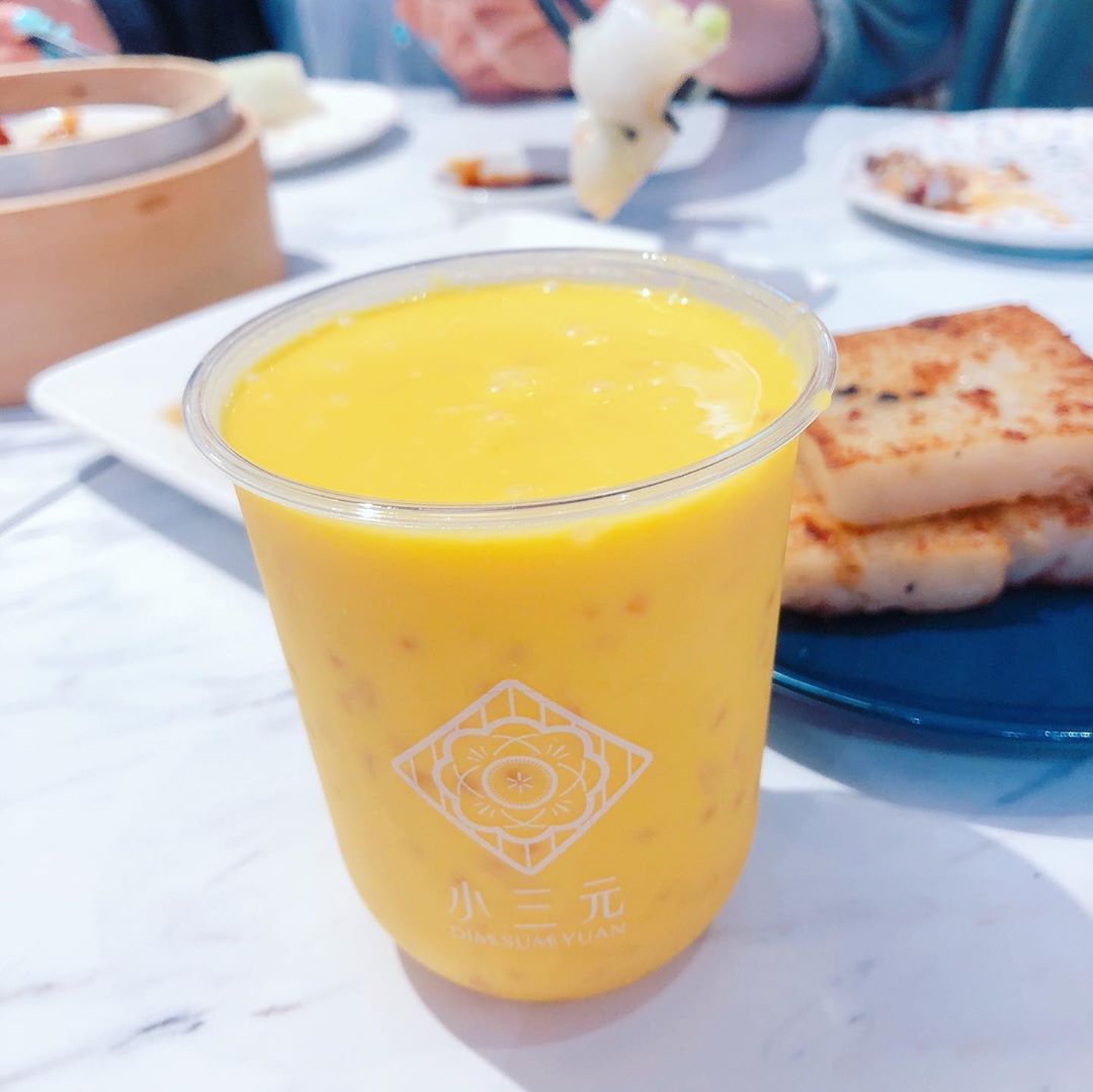 ▼鹹點吃完了當然要上甜點,既然是港式飲茶,那最不可或缺的就是奶黃流沙包(120元)跟楊枝甘露了(125元);撕開包子,滿滿的奶黃餡流瀉出來,這誰受得了啊~而經典飲料楊枝甘露口感滑潤、清甜爽口而不膩,喝完超滿足!
