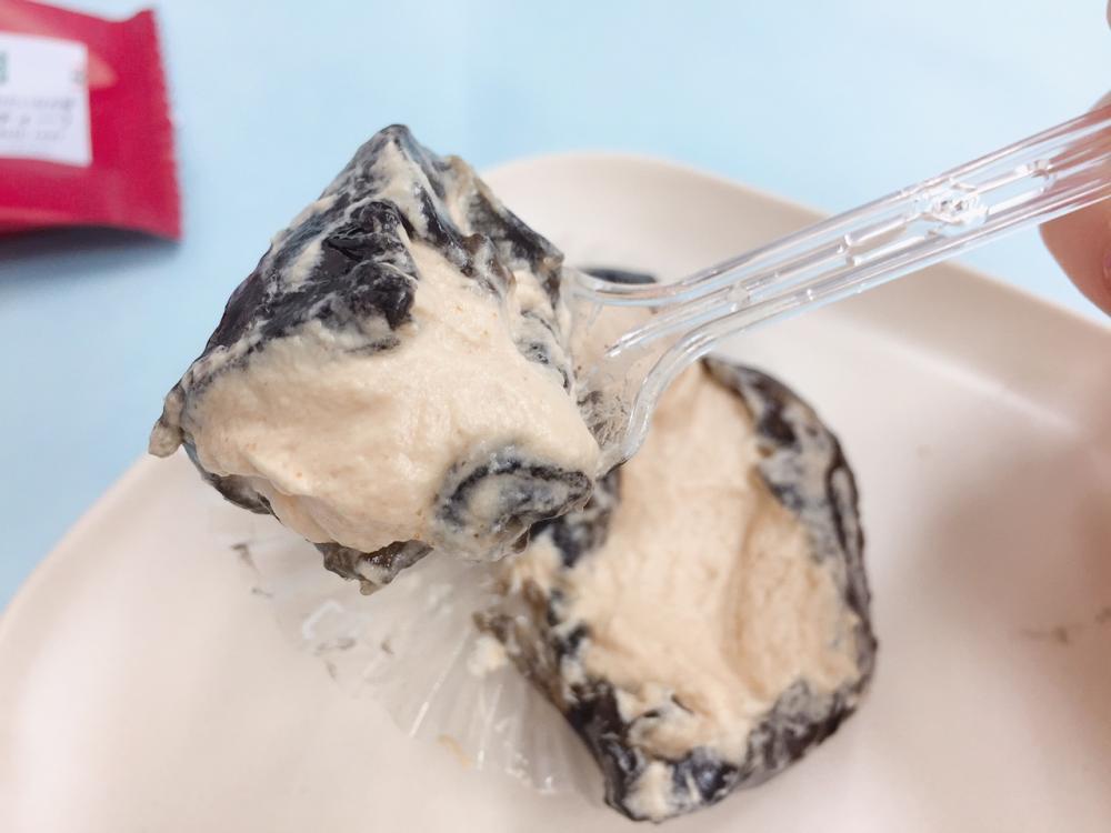 ▼這款大福的餅皮是用超大顆的珍珠做的,內陷則用阿薩姆紅茶製作,吃起來是濃郁的奶茶味。與傳統的大福不同,這款大福黑糊糊、黏黏的,看起來有點怪。