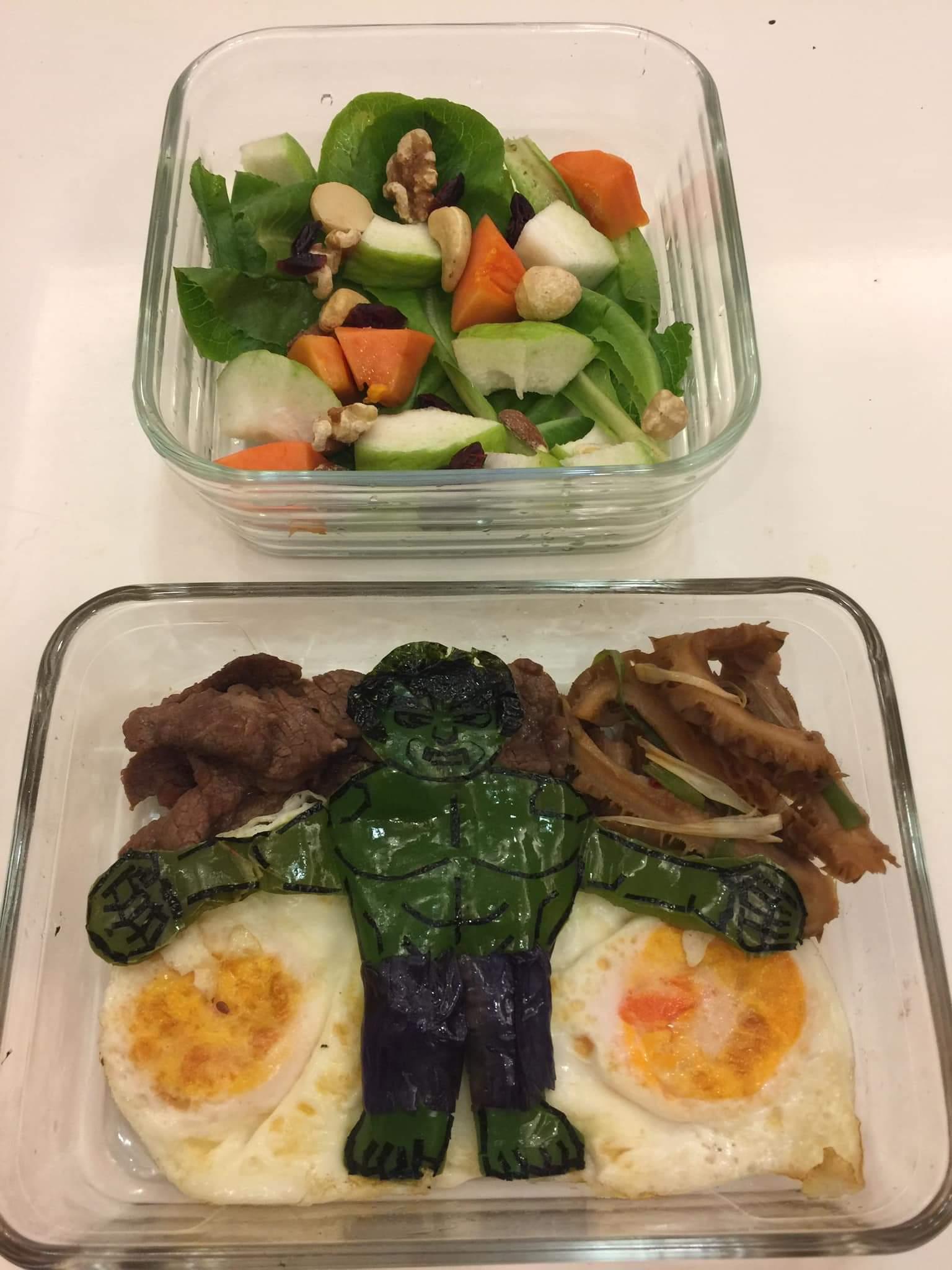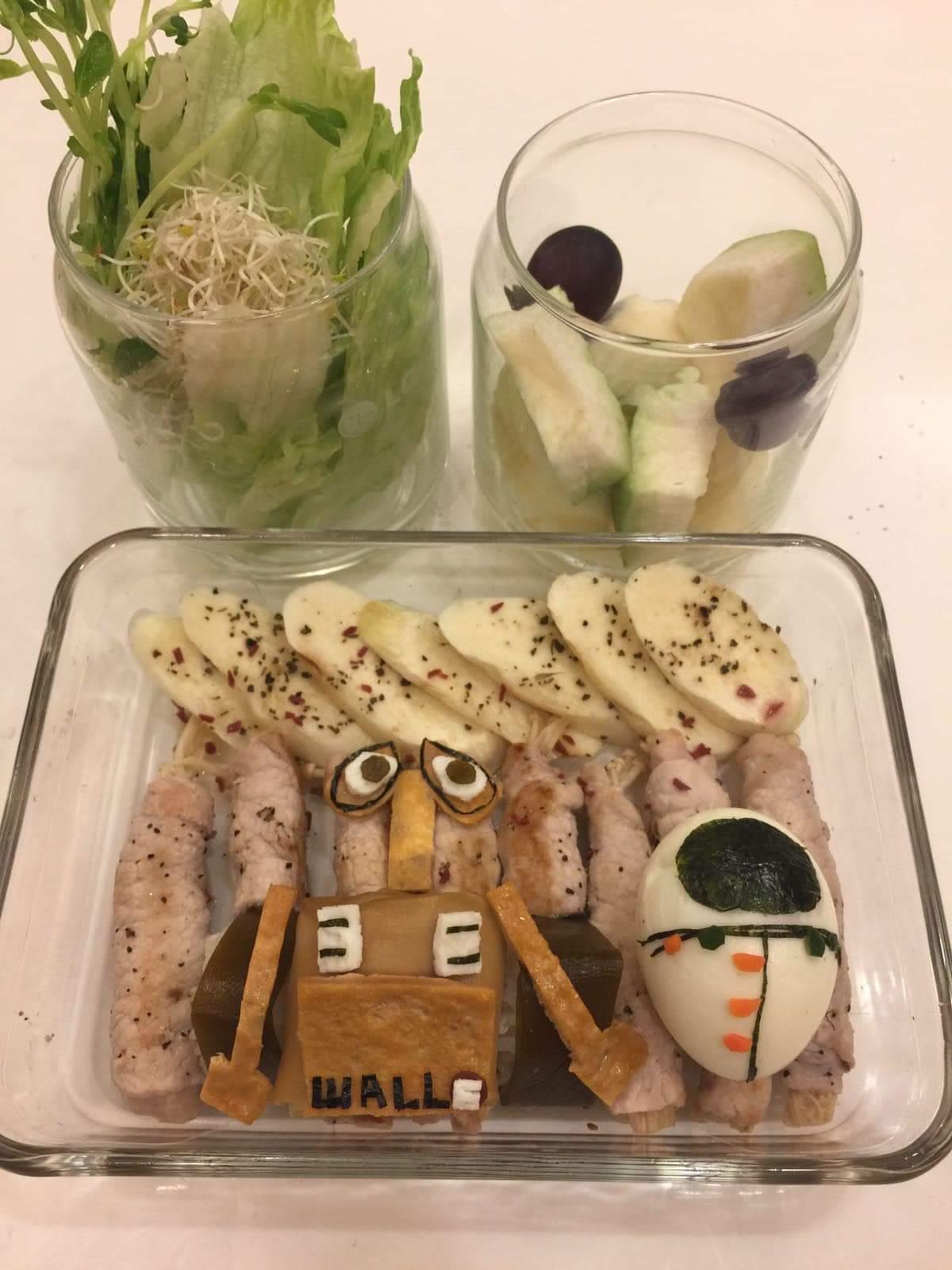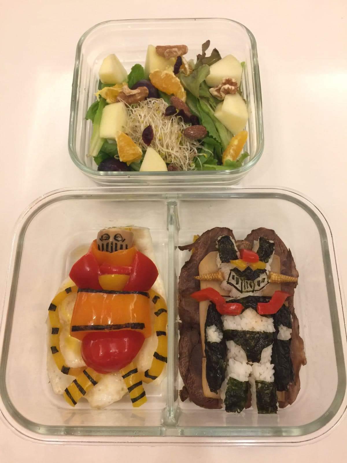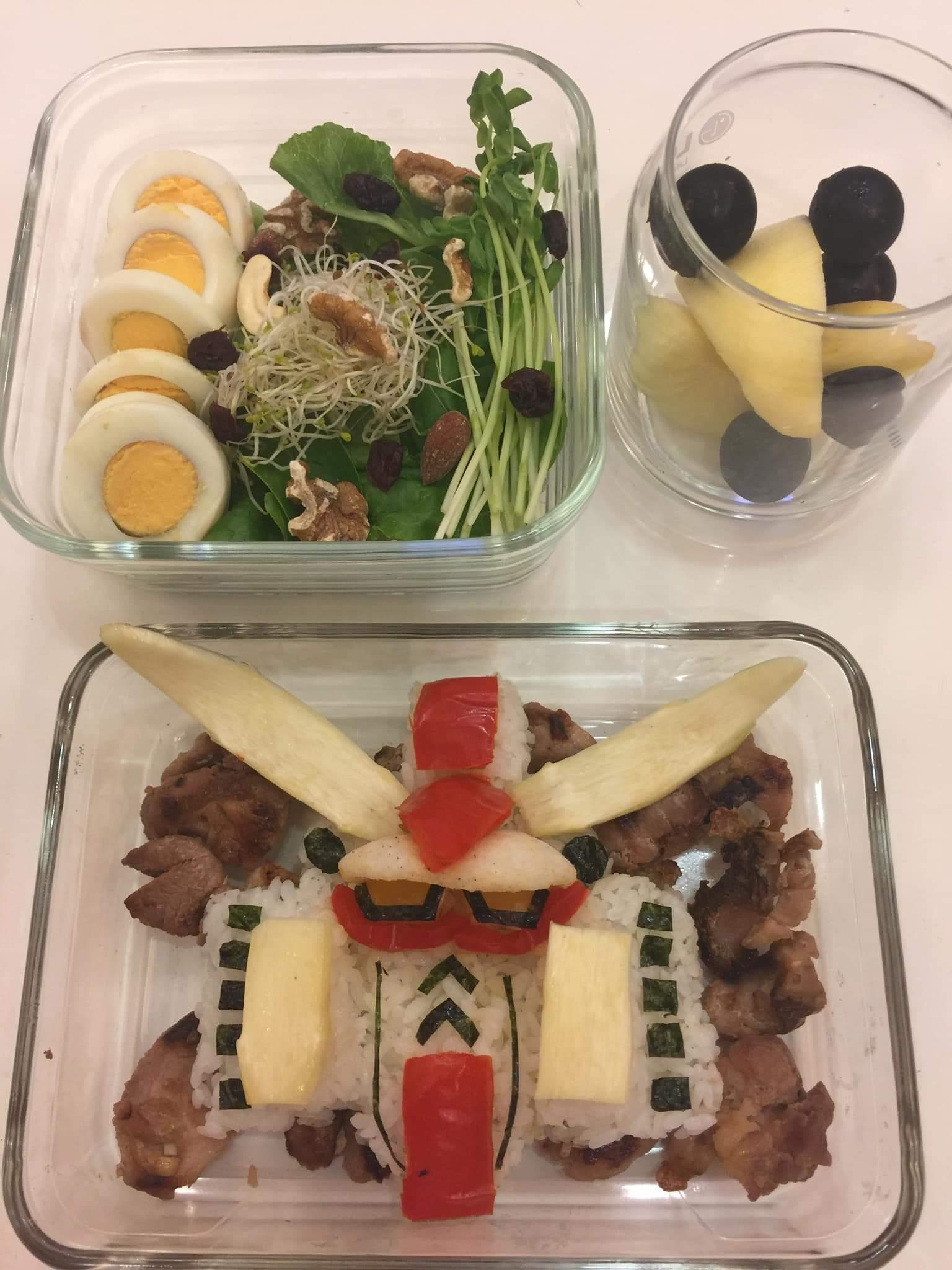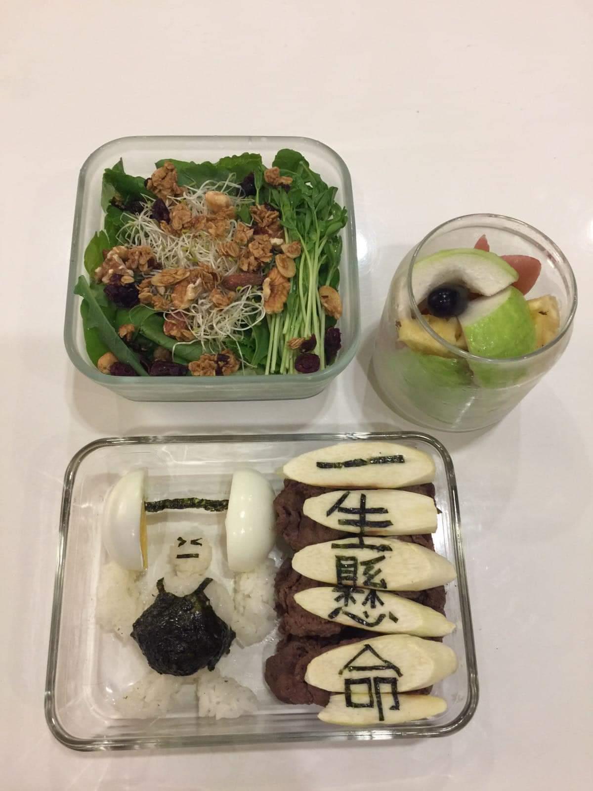 ▼從照片可以看到,老婆為了幫他兼顧營養均衡,便當裡一定會有沙拉、蔬果,以及肉類補充蛋白質,更不用說上面精緻的裝飾了!
