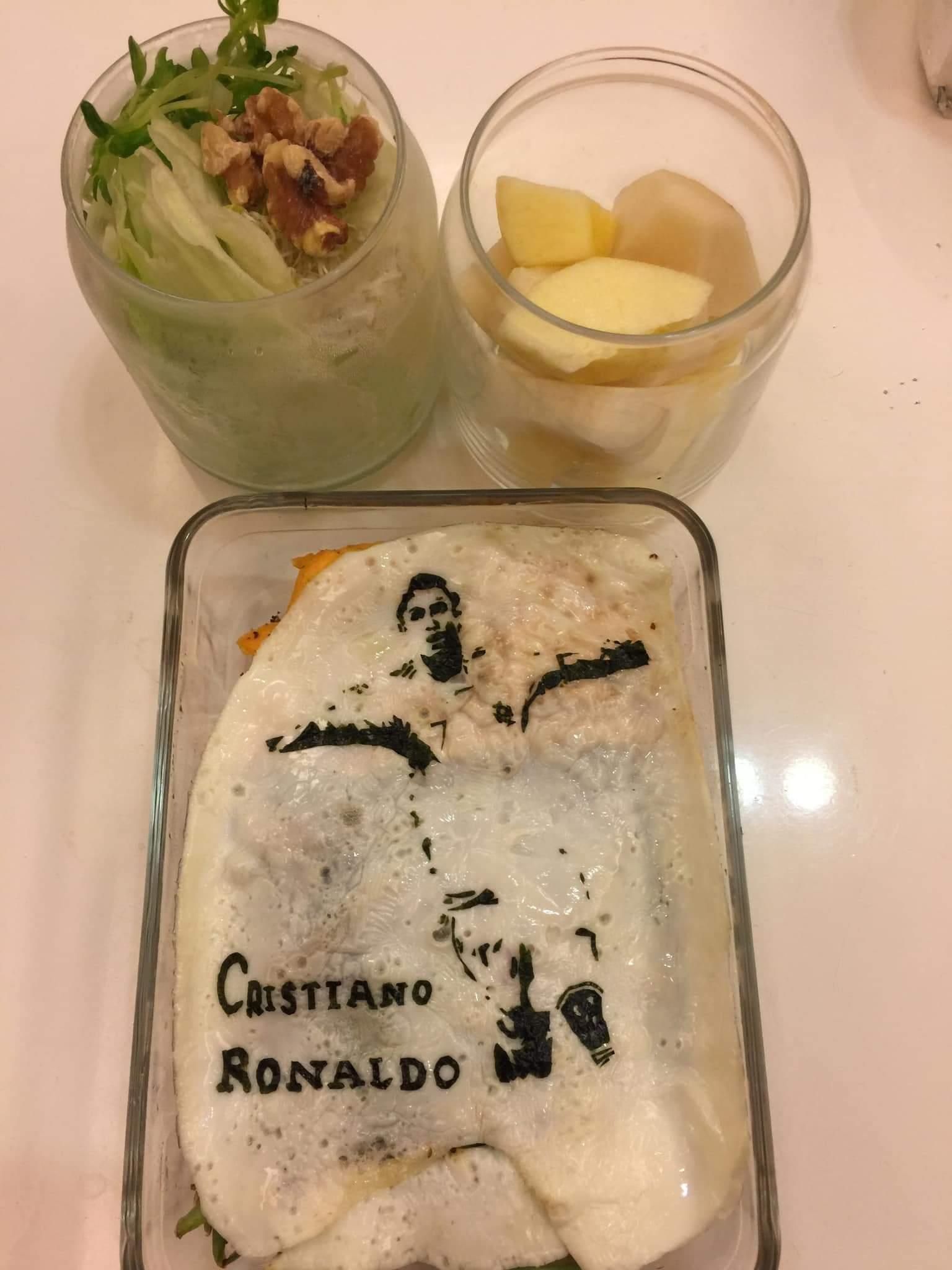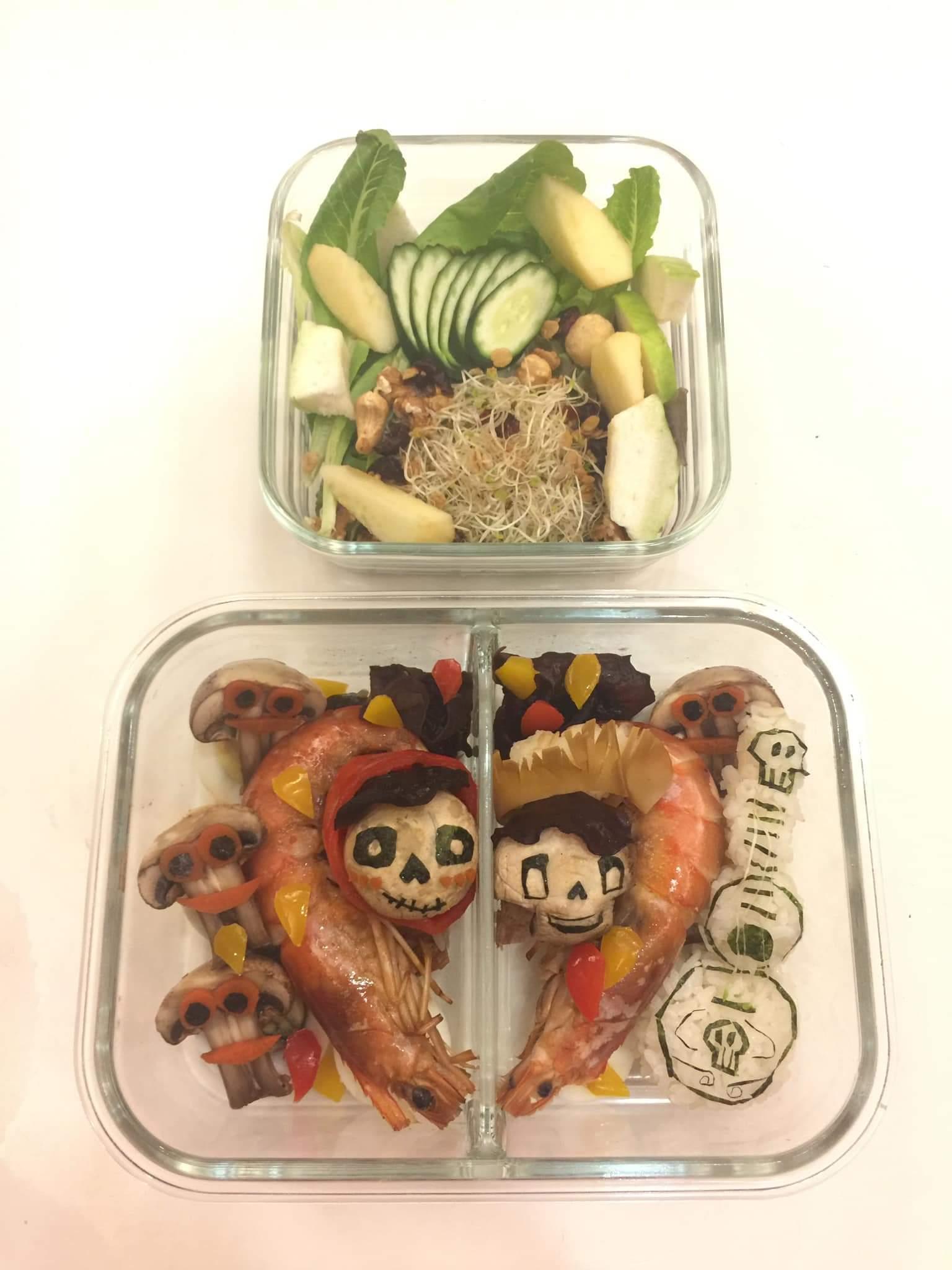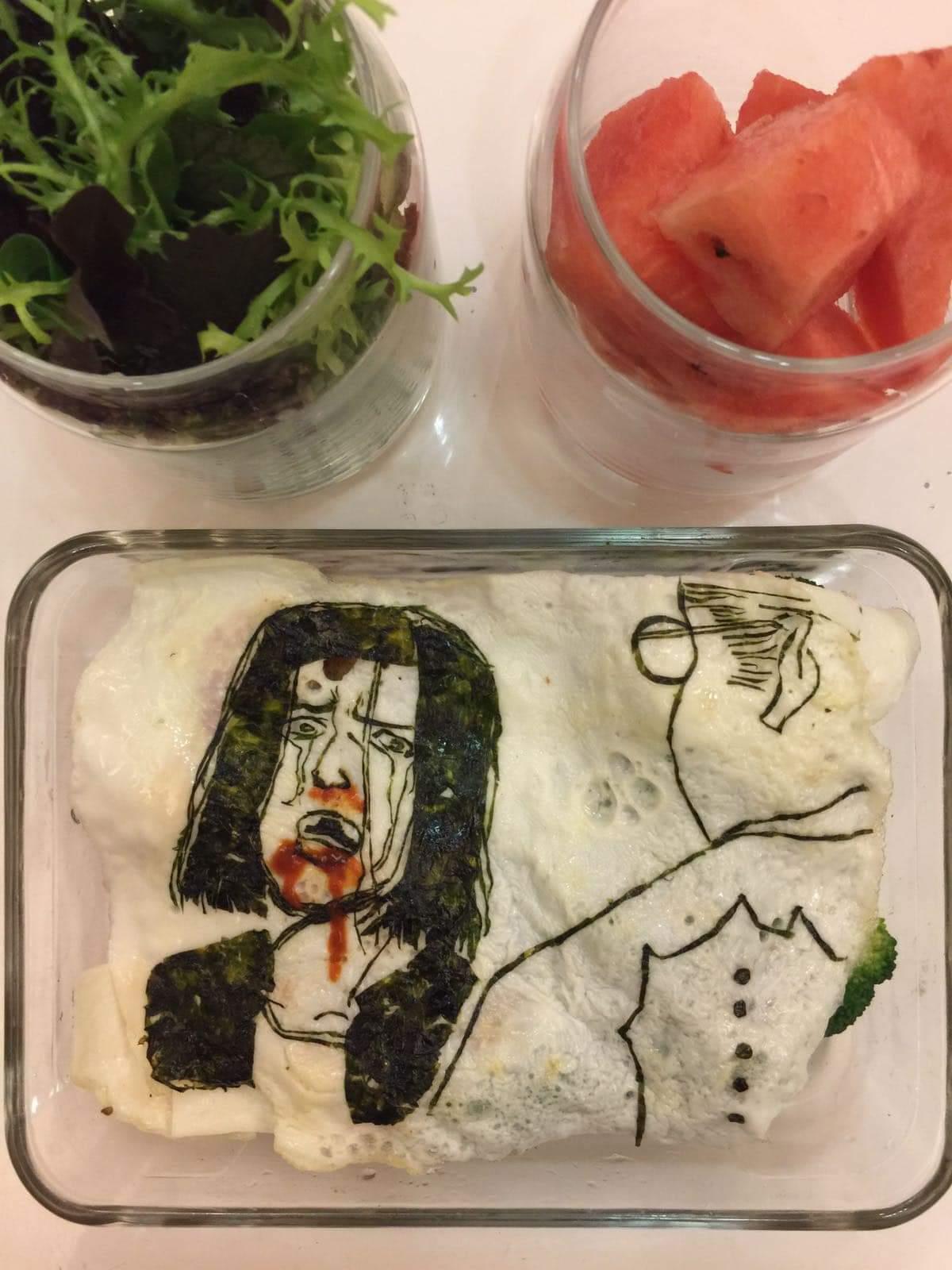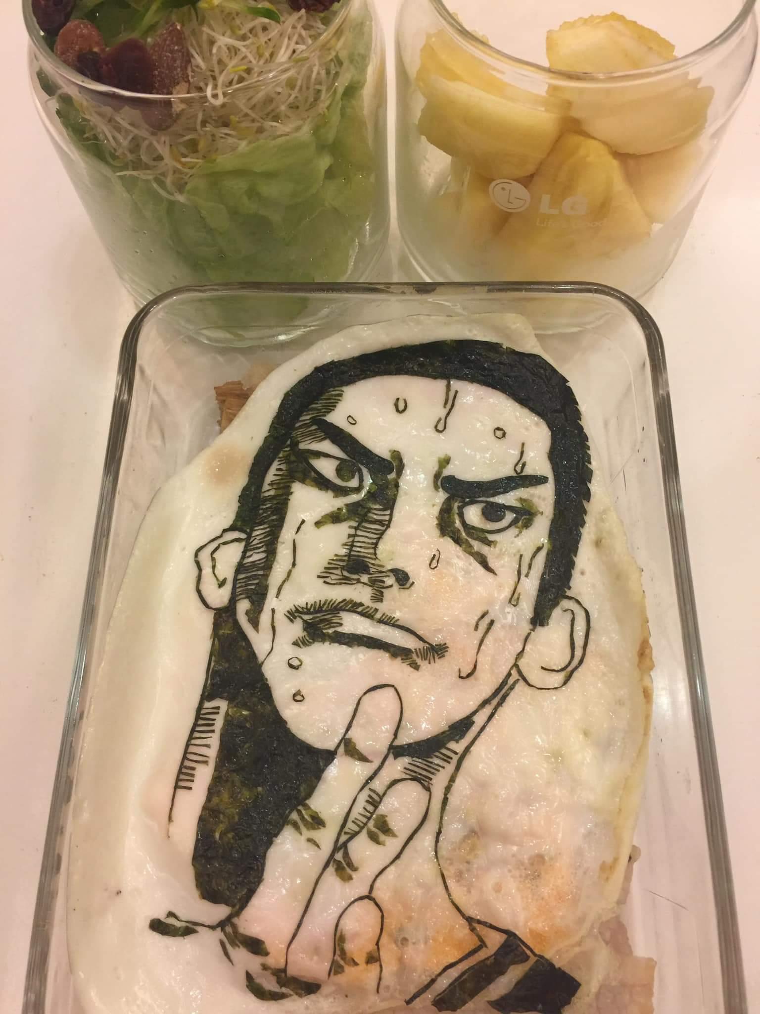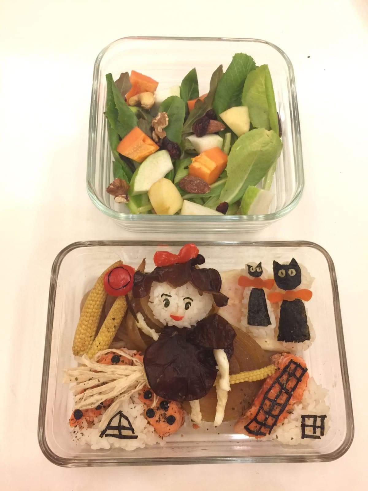 ▼從照片可以看到,老婆為了幫他兼顧營養均衡,便當裡一定會有沙拉、蔬果,以及肉類補充蛋白質,更不用說上面精緻的裝飾了!