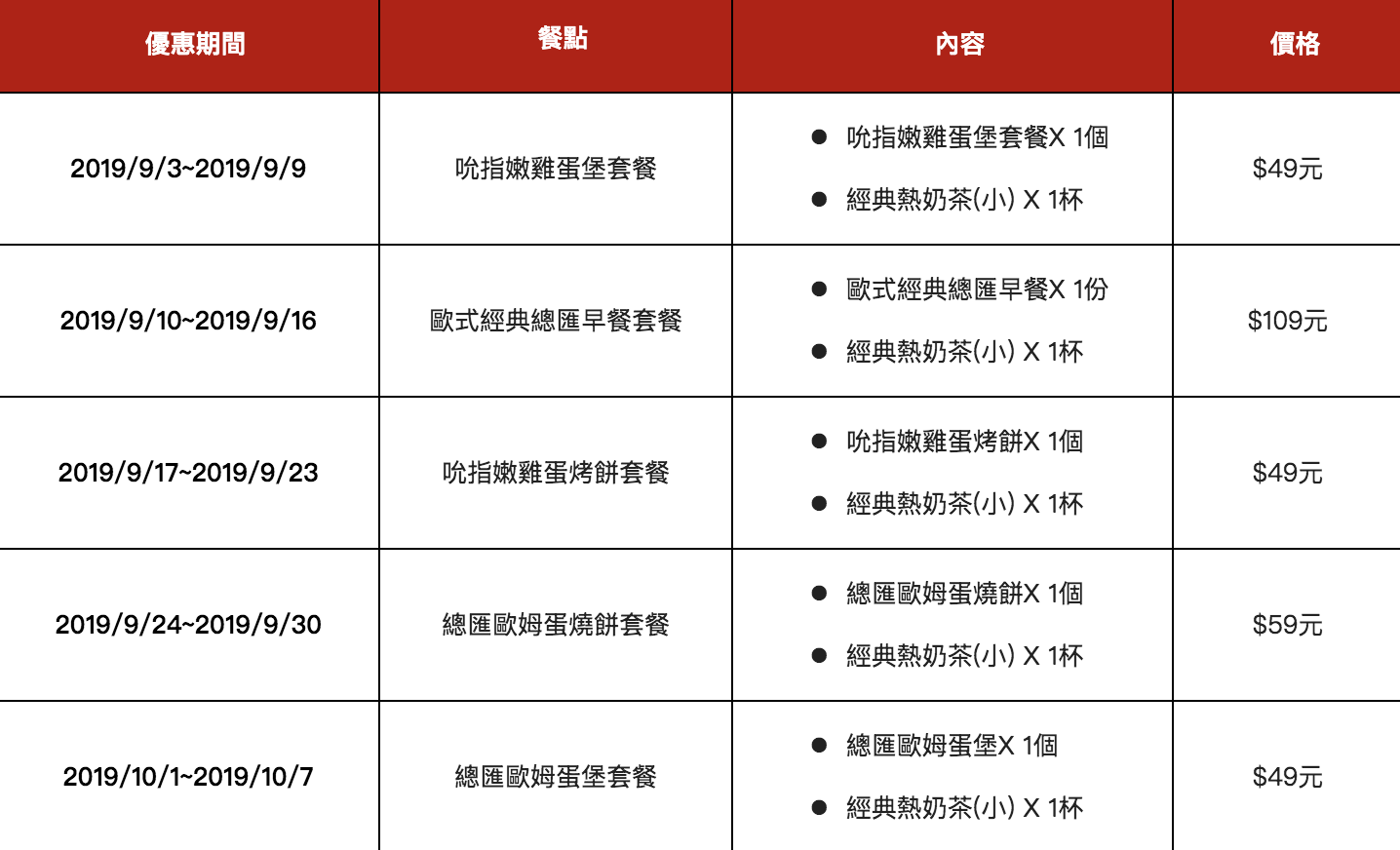 ▼此外,肯德基還推出「早餐天天省」優惠活動,即日起到10/7,每週都有不同的早餐特價優惠!