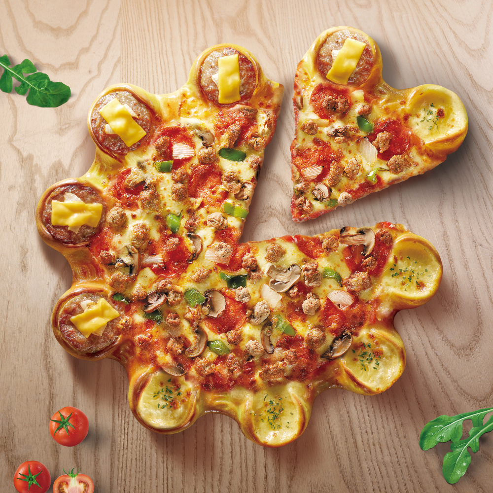 ▼而且這心花漾起司漢堡餅皮也有小巧思,切開以後會變成可愛的花瓣愛心形狀,吃披薩也能很有趣!