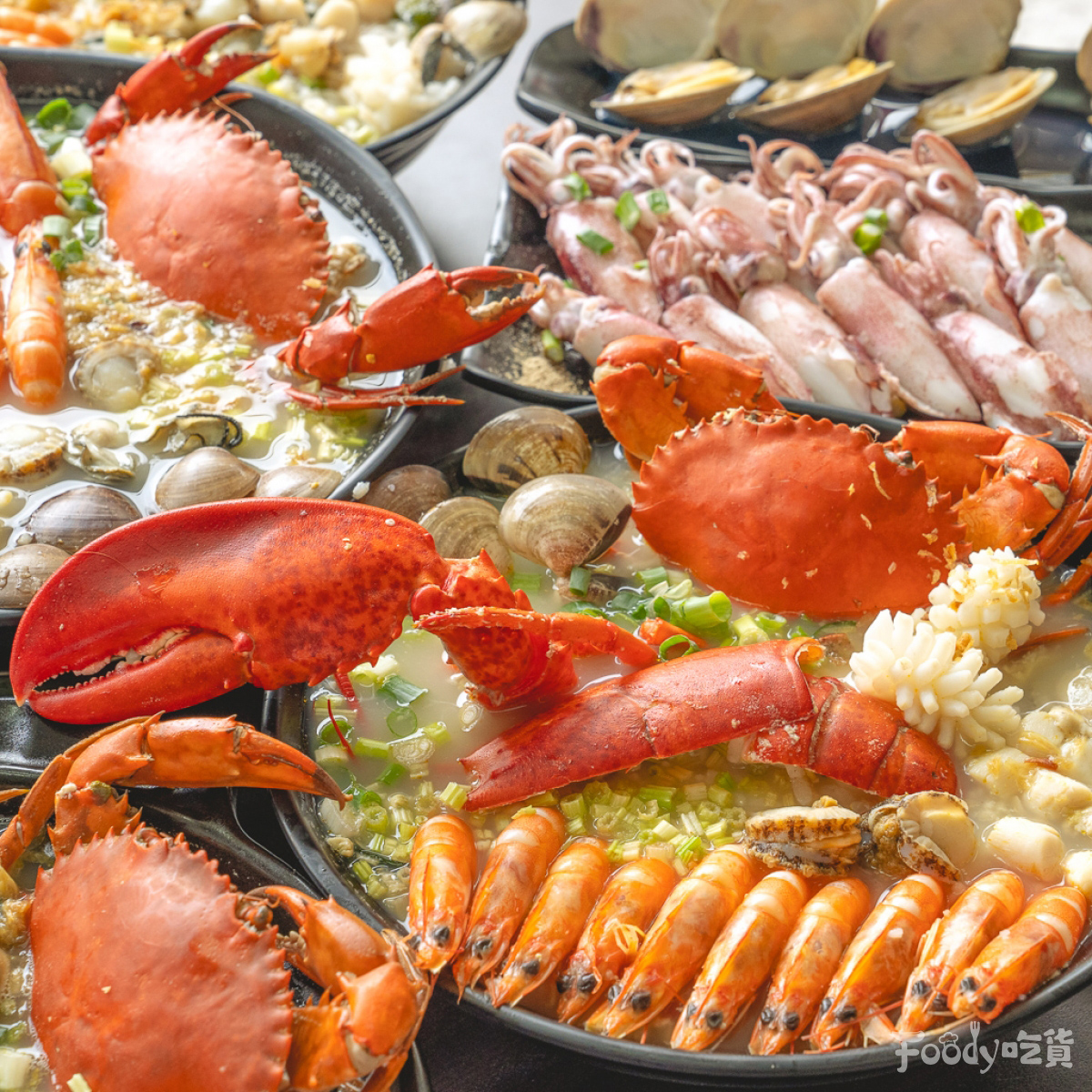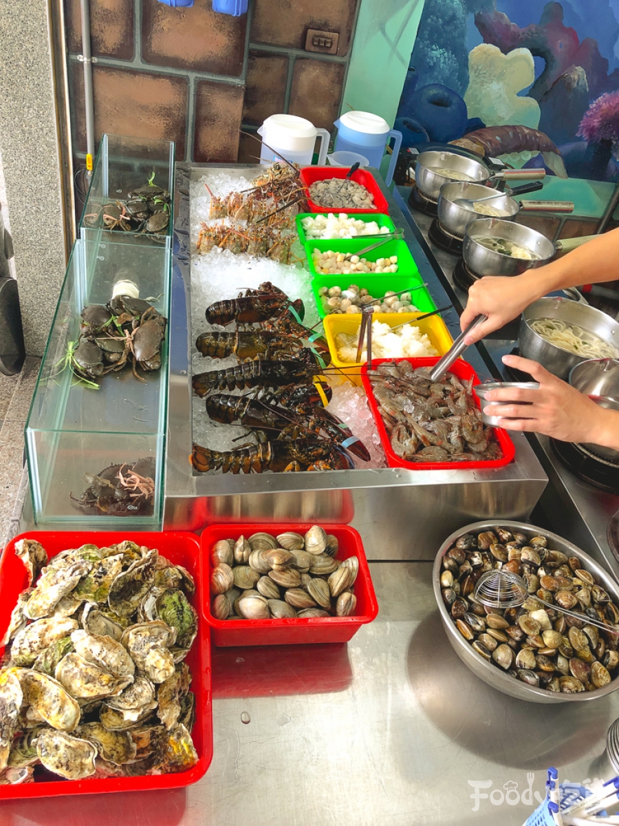 ▼看到這個吧檯還以為來到了海鮮熱炒店,一整排的龍蝦、紅蟳和其他海鮮一字排開,活跳跳的紅蟳在玻璃櫃裡遊走,新鮮現煮就是粥狂一大特色!