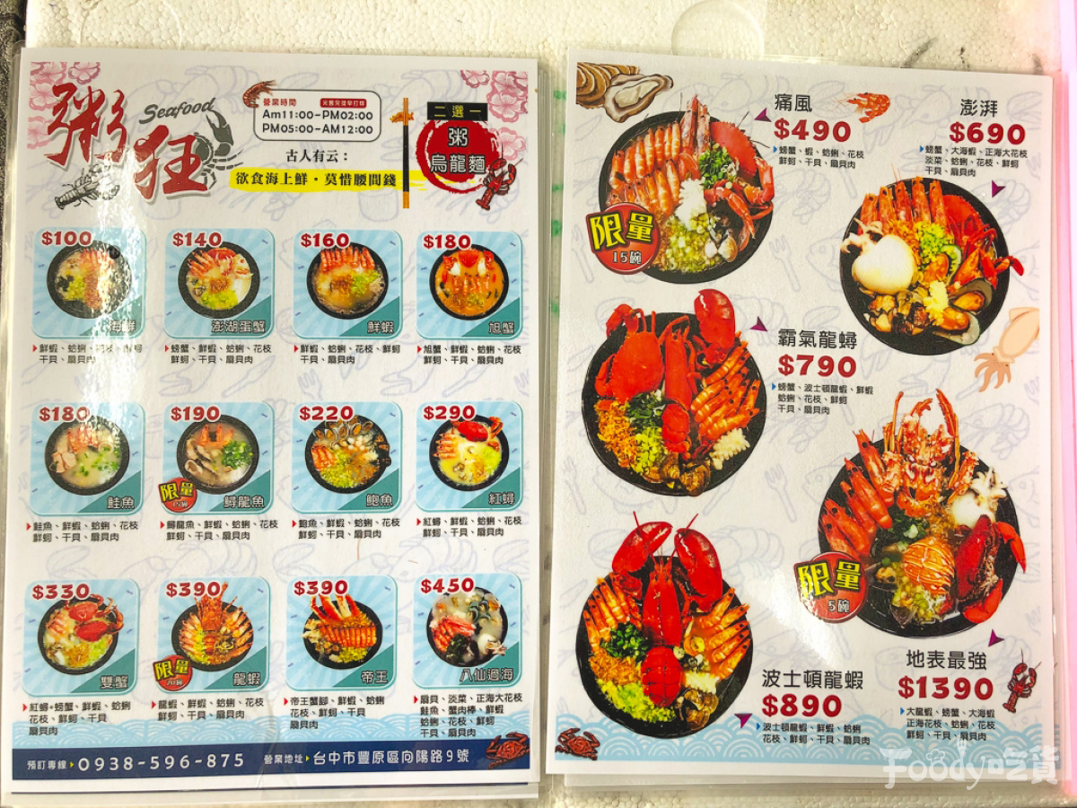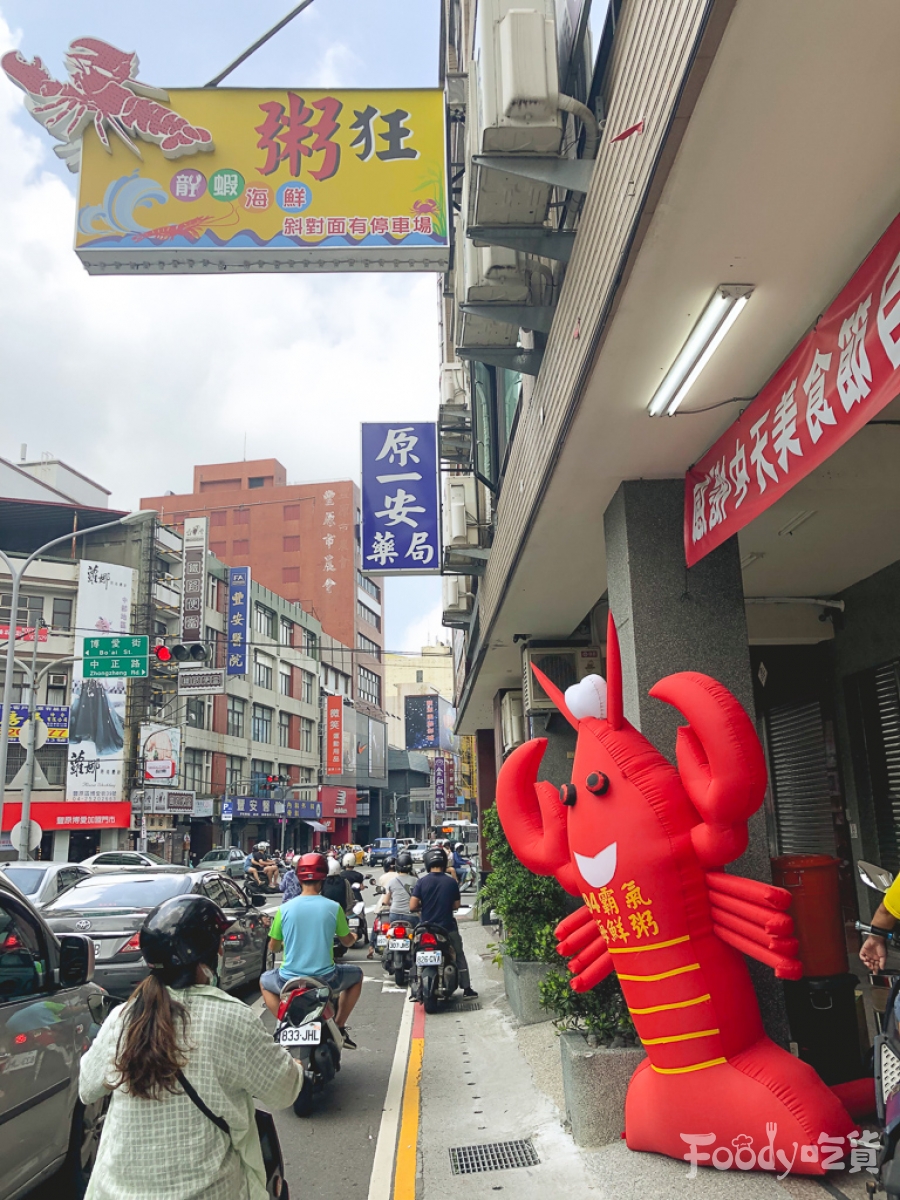 ▼「粥狂」位在台中豐原車站附近,從車站走過來大約五分鐘路程,只要看到門口有一隻超大的紅色龍蝦,就找到這間史上最狂的海鮮粥餐廳了!
