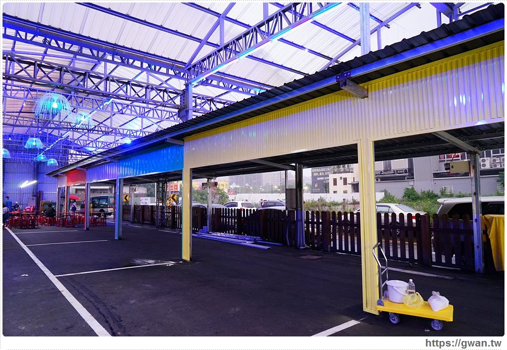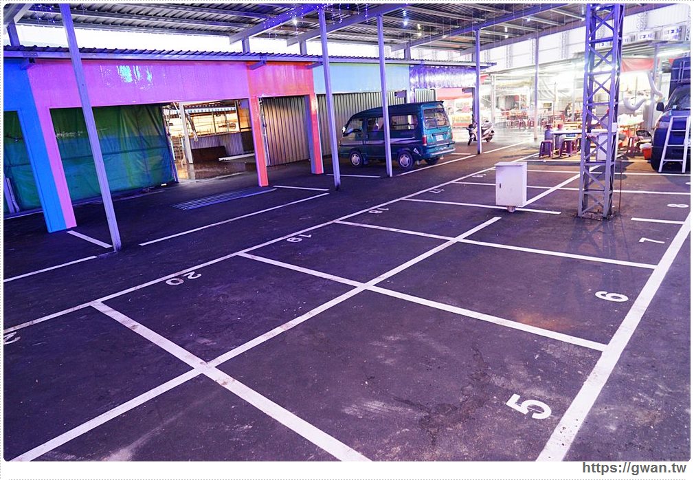 ▼此外,瑞豐國際美食村最特別的地方就是採取「店攤結合」的複合式空間,中央白線像停車格的地方租給一般夜市攤販,兩側則以鐵皮規劃出店面空間。