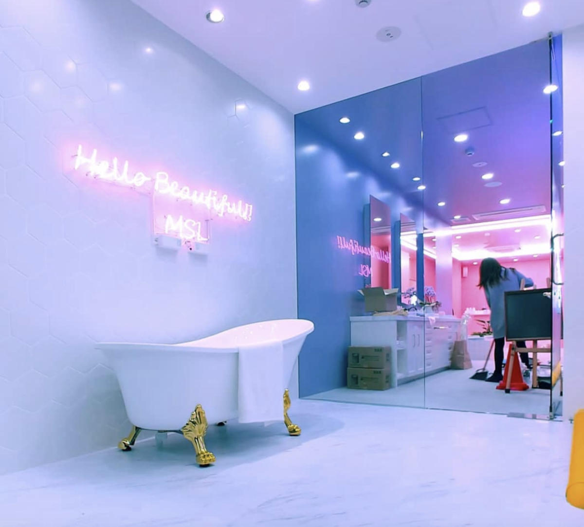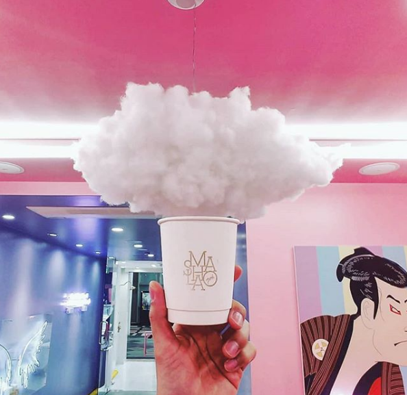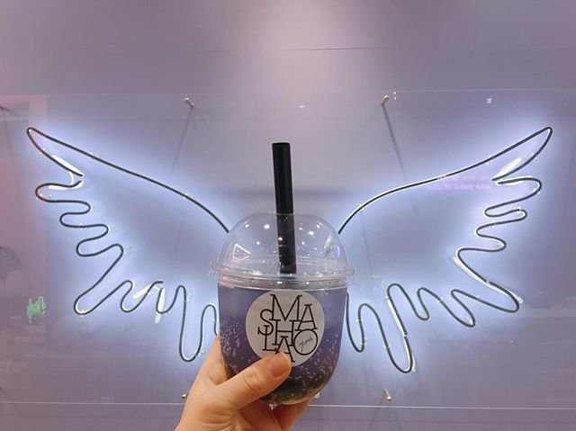 ▼MASHOLA是一個以「浴室」為主題的飲品店,一進店就可以看到這個超夢幻的翅膀牆,非常適合拍照。