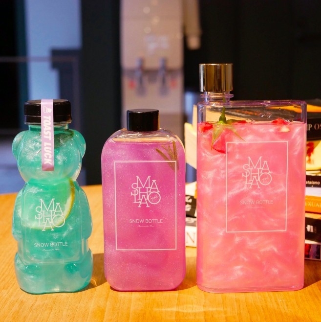 ▼除了獨具特色的裝飾,店內的飲品也非常特別,而其中最具人氣的就是星空漸層SNOW BOTTLE系列飲品。