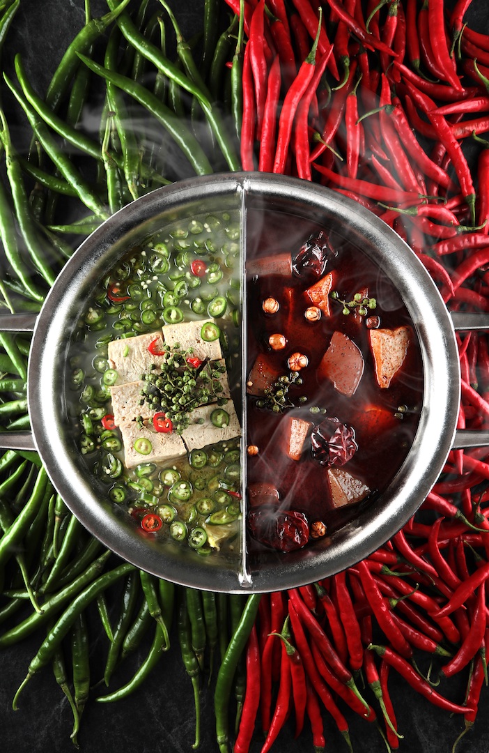 ▼青花驕「青麻椒肥牛鍋」湯頭以有鮮麻、溫潤、去腥特點的「重慶江津九葉青花椒」為主,加入10多種香辛料精煉成油,期間更需經過7天靜置熟成,最後加入蒜頭、洋蔥等拌炒,熬煮3小時才能製成一鍋濃郁的青鍋湯頭。費時費工的湯頭散發陣陣清香,喝起來清爽香麻、鮮甜無比。