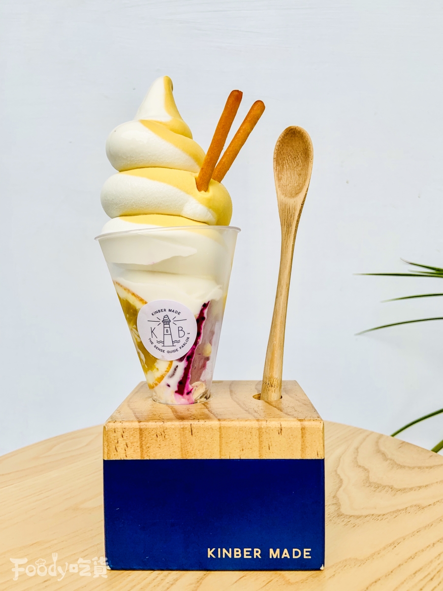 ▼「金帛手製」一直都是台中知名的人氣甜點店,來到這裡,一定要品嘗他們招牌的冰淇淋,這款「優果DoDo」由牛奶和芒果霜淇淋製成,杯子底部由燕麥、奇異果、火龍果、香吉士等新鮮水果堆疊而成,最後再放上芒果乾以及番茄棒,酸甜酸甜的好滋味,愛吃冰的人必點!