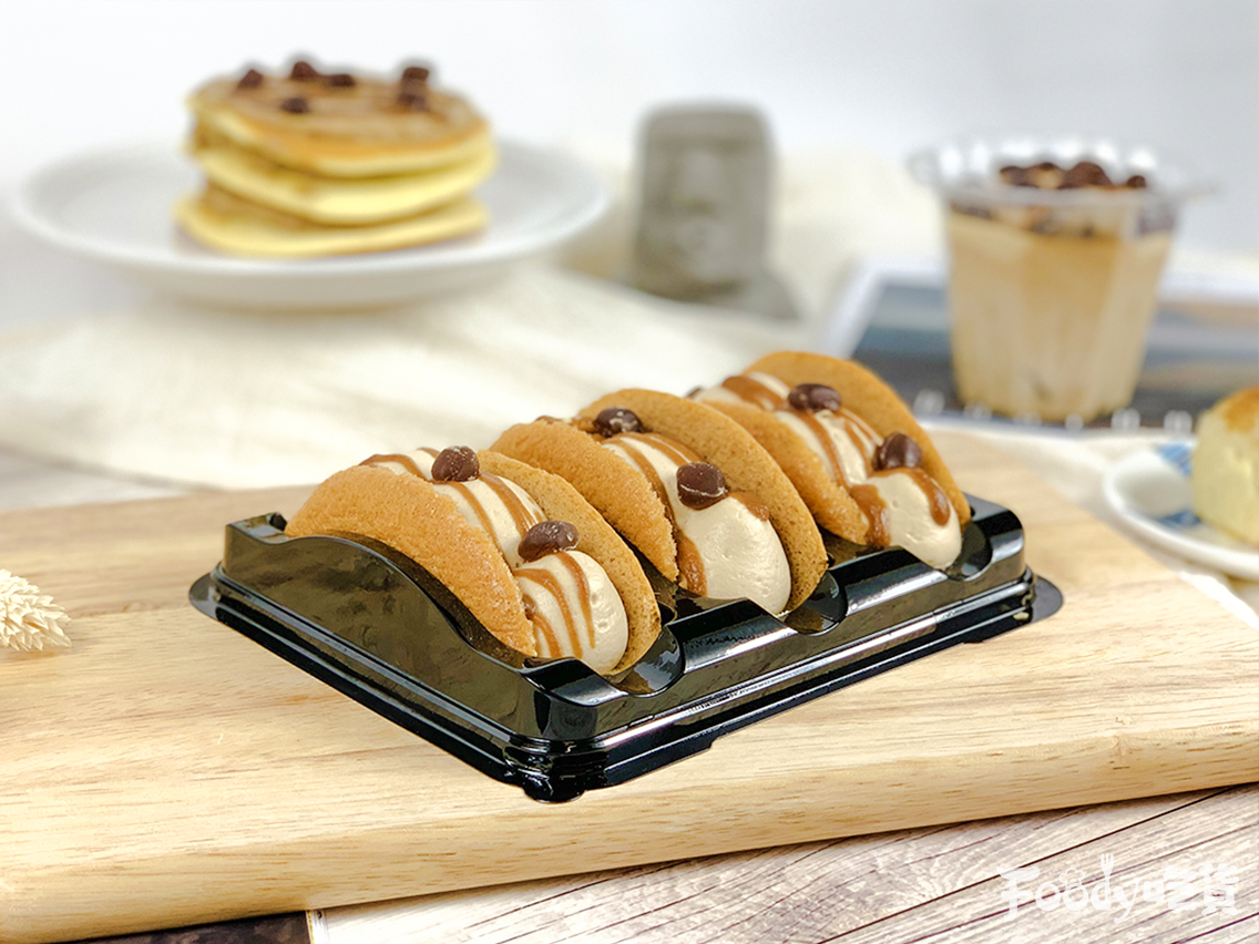 ▼「黑糖珍奶銅鑼燒」用香甜蜂蜜銅鑼燒餅皮,搭配茶香甘甜的奶茶餡及清爽檸檬餡,鋪上Q彈黑糖珍珠,可口美味。(NT.52)