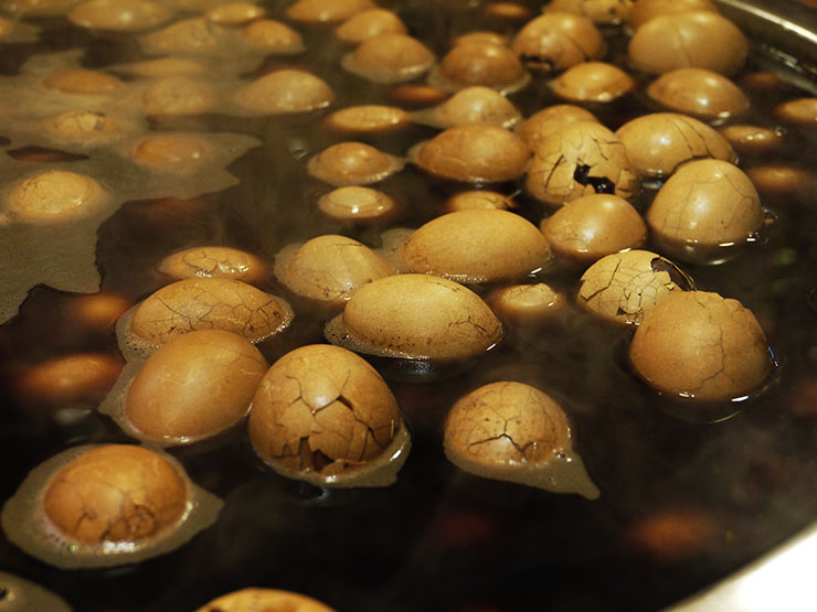 ▼台灣幾乎每間超商都有茶葉蛋,由於茶葉蛋的做法是需先將蛋殼敲出一些裂縫,再放進去滷,因此常有出現許多裂口、甚至光溜溜的蛋。