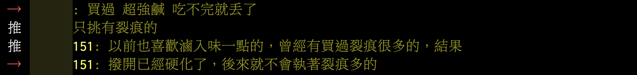 ▼但是也有人說不買滷到裂開的茶葉蛋,因為常常會太鹹,或是有些內層的蛋已經硬化、甚至滷到爛掉。