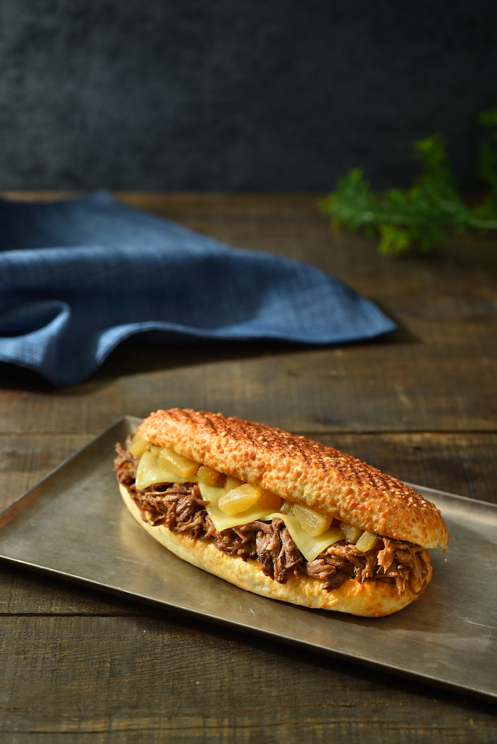 ▼紐奧良風牛肉帕里尼:燉煮牛肉的風味,風味獨特BBQ醬汁,以逐一手撕肉塊,增加肉的紮實咀嚼感,加以鳳梨片、香菜提味,仿佛身在紐澳良區的在地餐館。