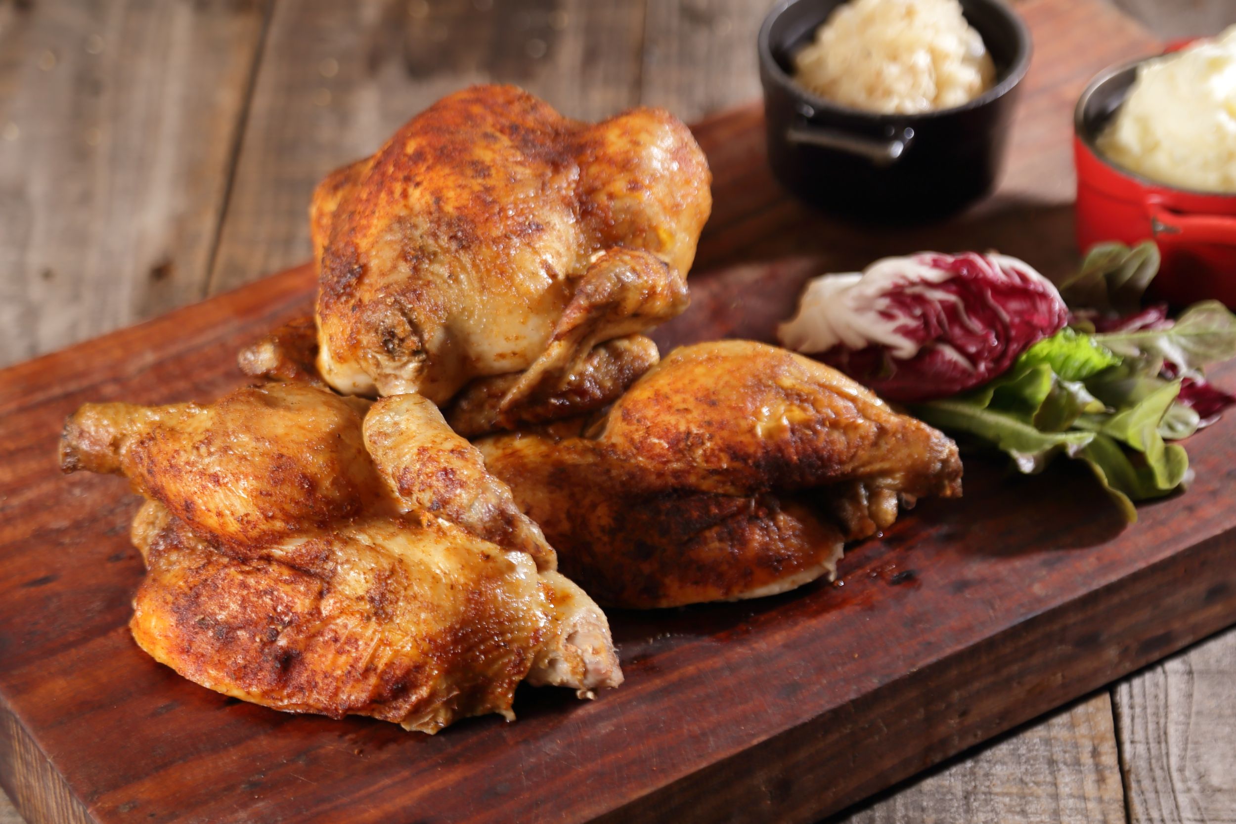 ▼大口吃肉也少不了雞肉料理,啤酒節「烘烤半雞」的主要食材是選用台灣本地的地雞,洗淨後以甜椒粉、黑胡椒、鹽醃製約2至3小時,塞入巴西里等香料於腹中,以190度烘烤一小時而成,香酥外皮、鮮嫩肉質,與甜美的肉汁完美交織,造就讓人欲罷不能的好滋味。