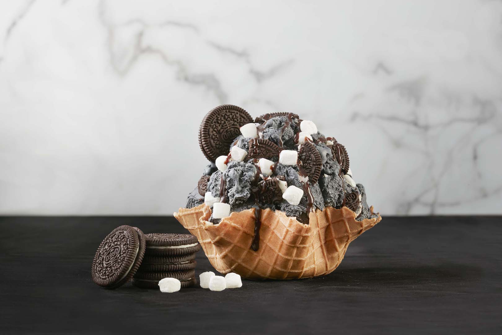 ▼巧克黑皇后:酷聖石耗時半年研發「極濃黑牛奶冰淇淋」,基底為濃醇香甜的牛奶冰淇淋,調配成吸引目光的黑色造型,拌入Hershey's巧克力醬、經典OREO、小麻糬;極黑外型就像黑魔女一樣,引領神秘的魔幻力量~