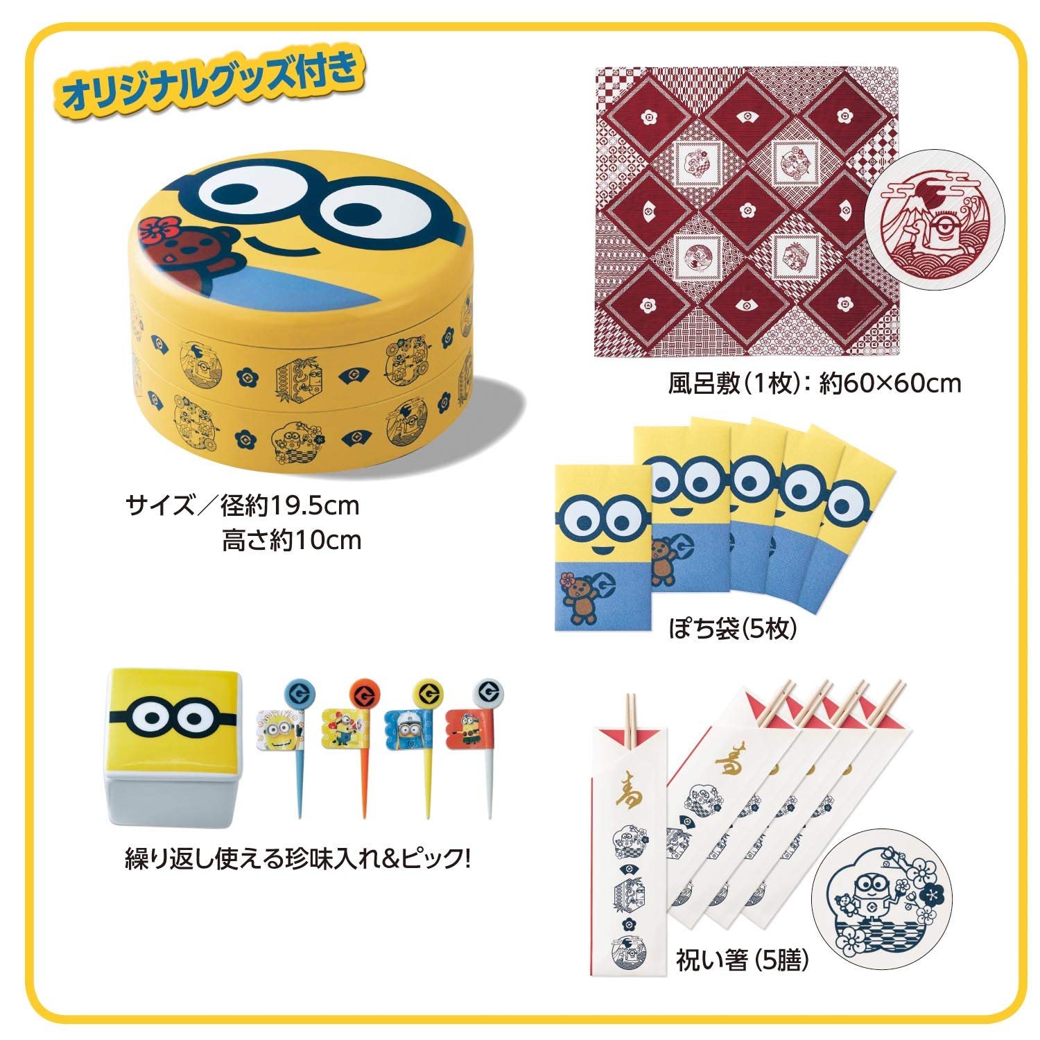 ▼購買的「おせち・二段重<ミニオン>」的消費者,除了豐富的年菜組合以外,還可以得到小小兵款式的紅包袋5個、筷子5雙、可重複使用的小盒子1個、可愛小牙籤等物品,喜歡小小兵的朋友一定要把握機會訂購!