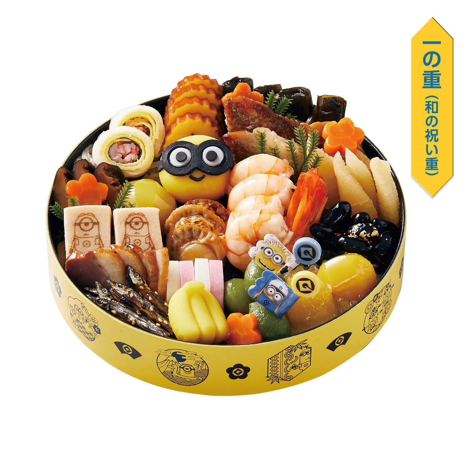 ▼首先來看看小小兵包裝的雙層御節料理(おせち・二段重<ミニオン>)吧!